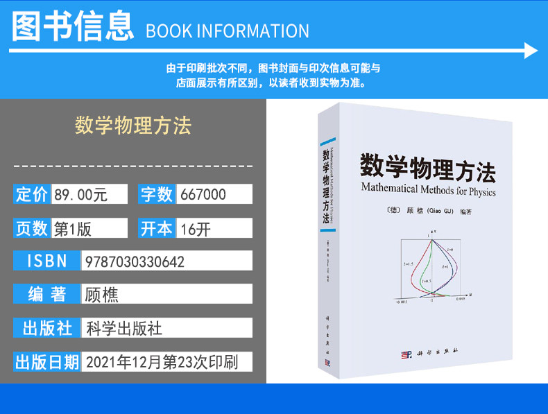 📚 数学物理方法 (德)顾樵 物理类 本科教材 科学出版社 9787030330642