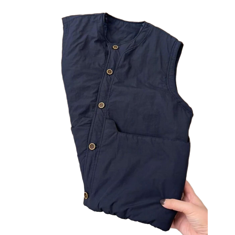 📚 工装风藏青色圆领单排扣无袖棉服马夹冬季新款宽松叠穿保暖小外套