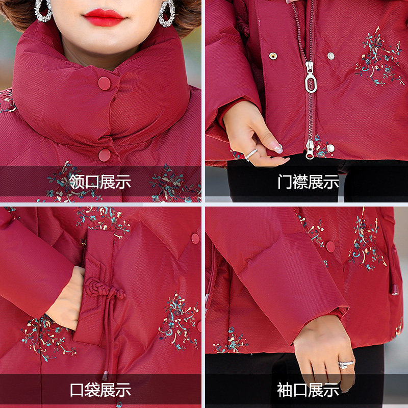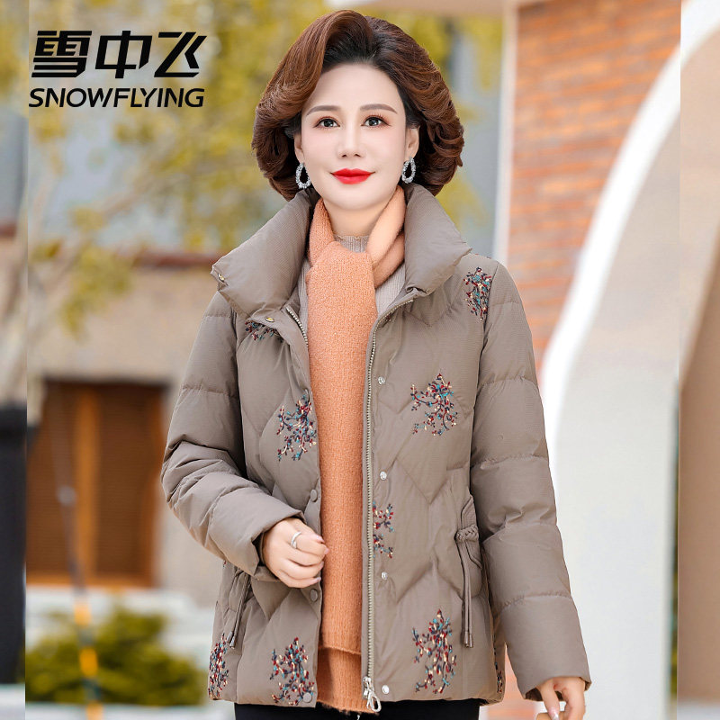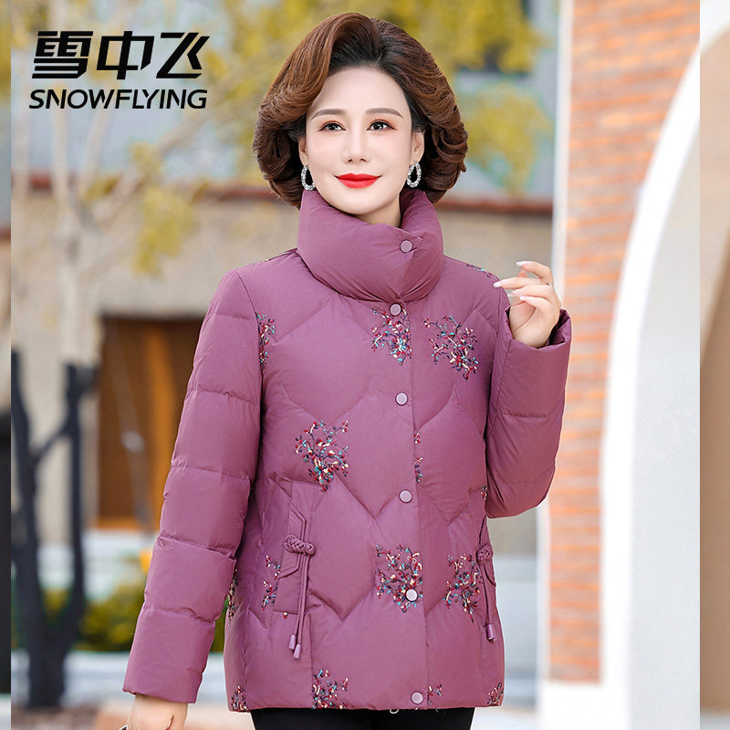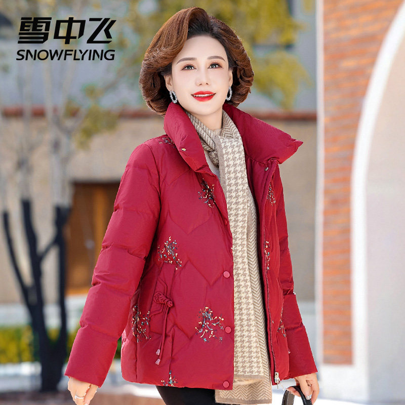 📚 雪中飞时尚绣花羽绒服女款立领短版显身材妈妈装加厚保暖冬季外套