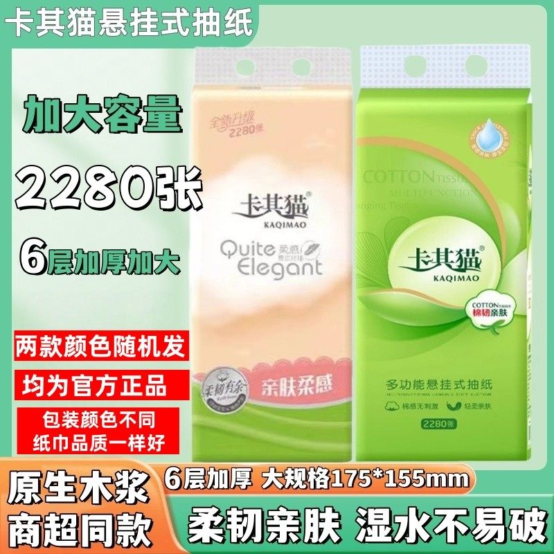 📚 卡其猫抽纸悬挂式底部抽卫生纸6层加厚家用厕纸擦手纸大包纸巾
