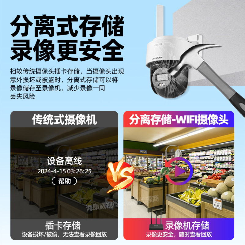 📚 海康威视无线wifi监控套装商铺超市仓库家用双镜头摄录像室内高清