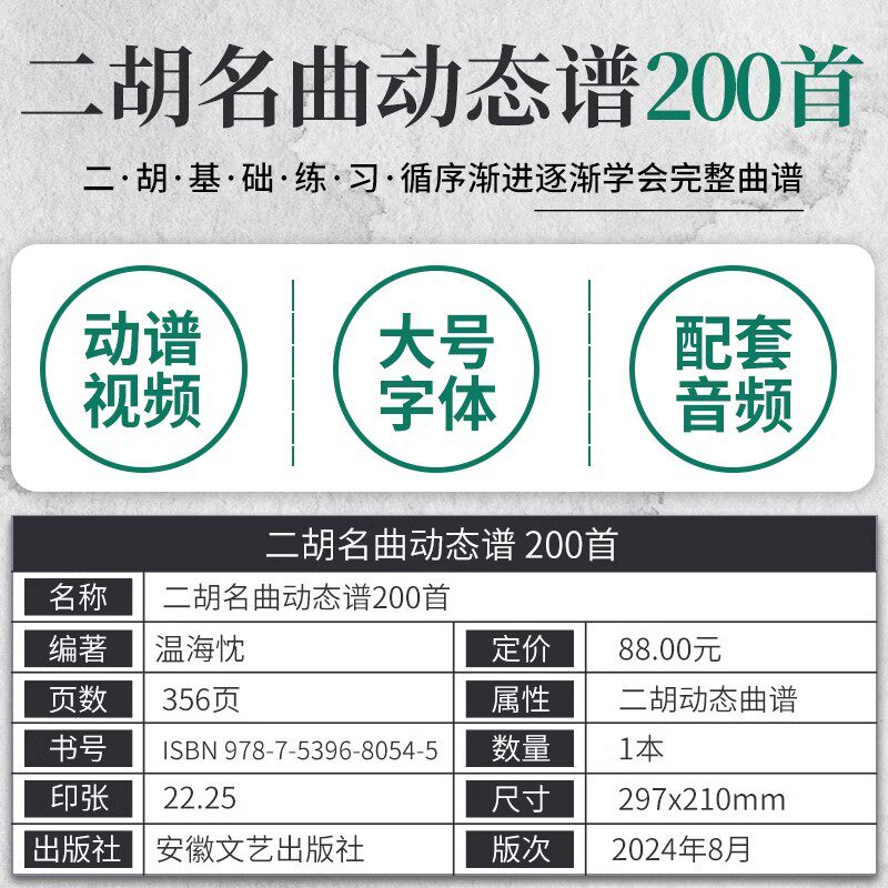 📚 【正版】二胡名曲动态谱200首 二泉映月赛马老歌曲独奏从零起步二胡自学入门经典曲谱教程成人儿童零基础实用演奏方法教学曲谱练习
