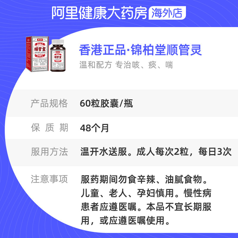 📚 锦柏堂顺管灵止咳香港清肺海外化痰咳嗽咳喘润肺润喉咽炎60粒滋阴