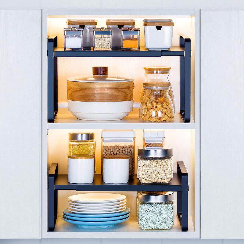 📚 可伸缩厨房分层架整体橱柜隔层桌面置物架隔板柜内收纳层架碗碟架