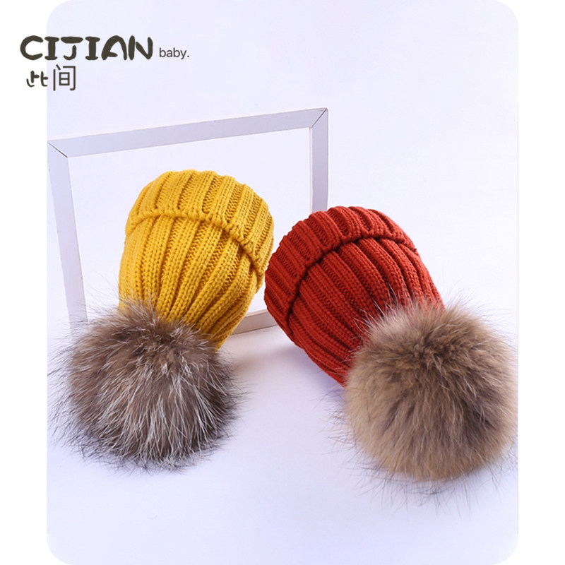 📚 儿童帽子秋冬季韩版保暖男童女童婴儿针织毛线加绒帽宝宝真毛球潮
