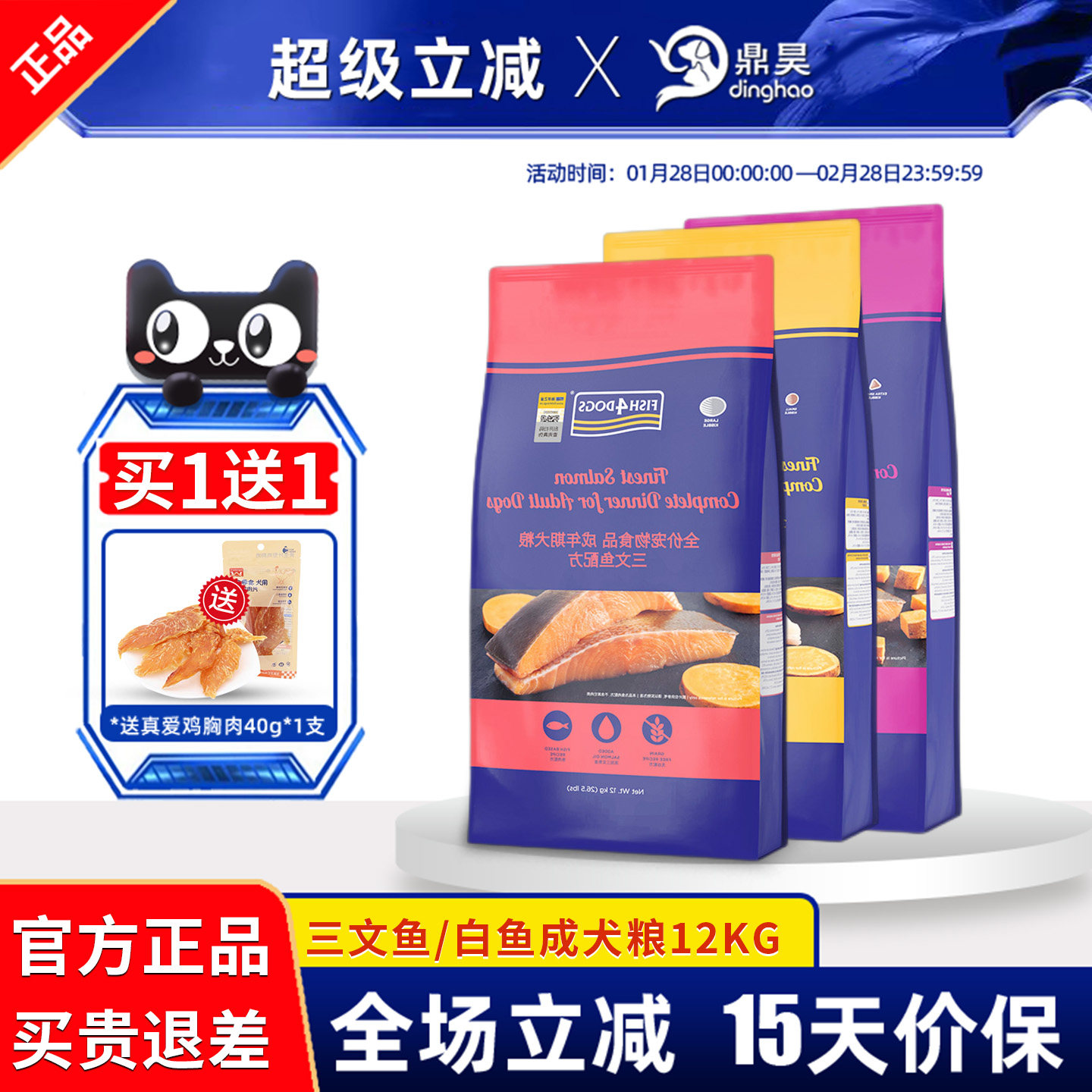 📚 fish4dogs狗粮三文鱼成犬粮12KG白鱼中大型金毛边牧无谷全价犬粮