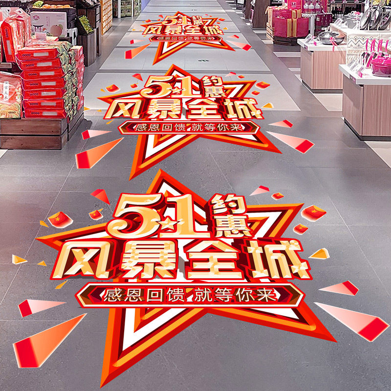 📚 五一劳动节装饰品地贴活动海报物料商场超市51主题氛围布置地贴画