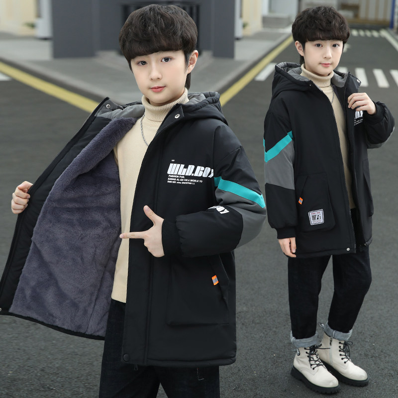 📚 男童加绒外套2025新款中大童秋冬装加厚派克服儿童中长款洋气风衣