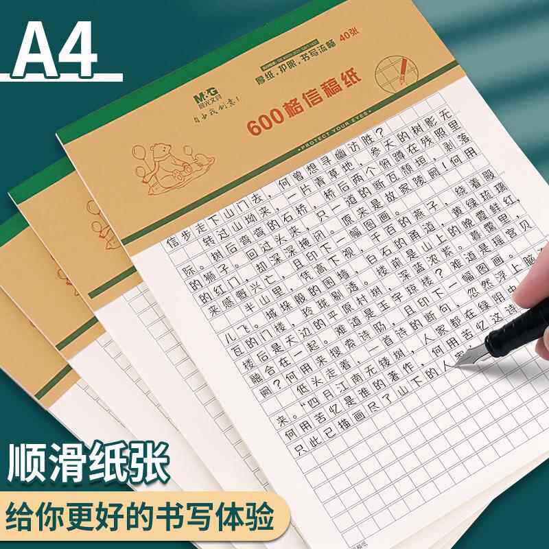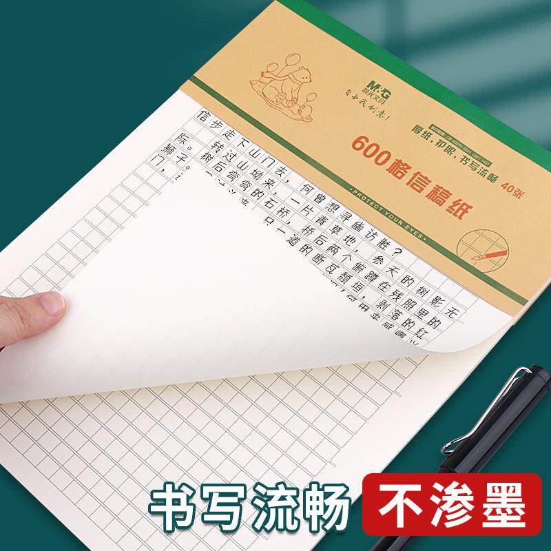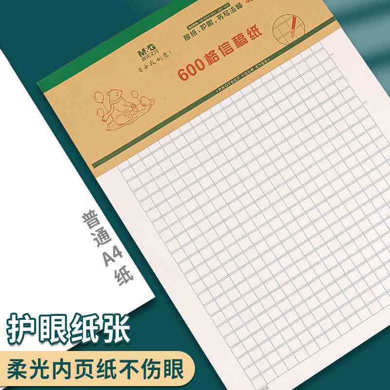 📚 晨光600格稿纸80g厚纸护眼信纸考试小学生专用作文本原稿纸信稿纸文稿纸600字加厚10本装方格稿纸本团购
