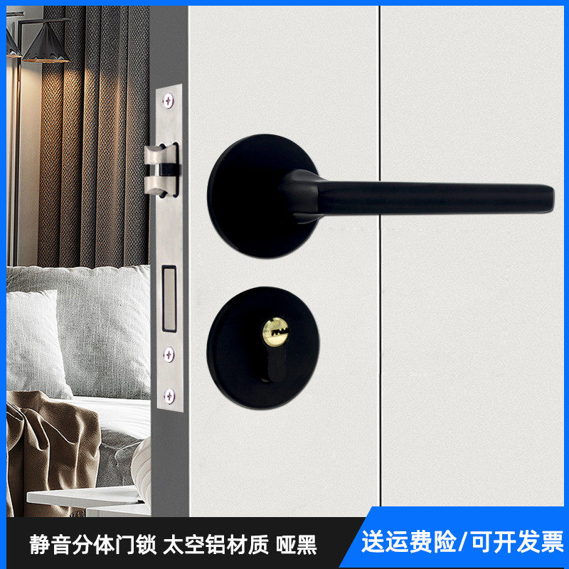 📚 58中心距分体式门锁卧室木门7250锁体黑色执手锁5845小葫芦把手锁