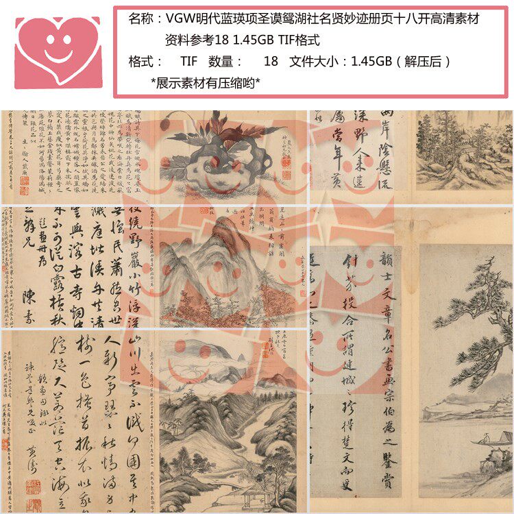 📚 VGW明代蓝瑛项圣谟鸳湖社名贤妙迹册页十八开高清素材资料参考18