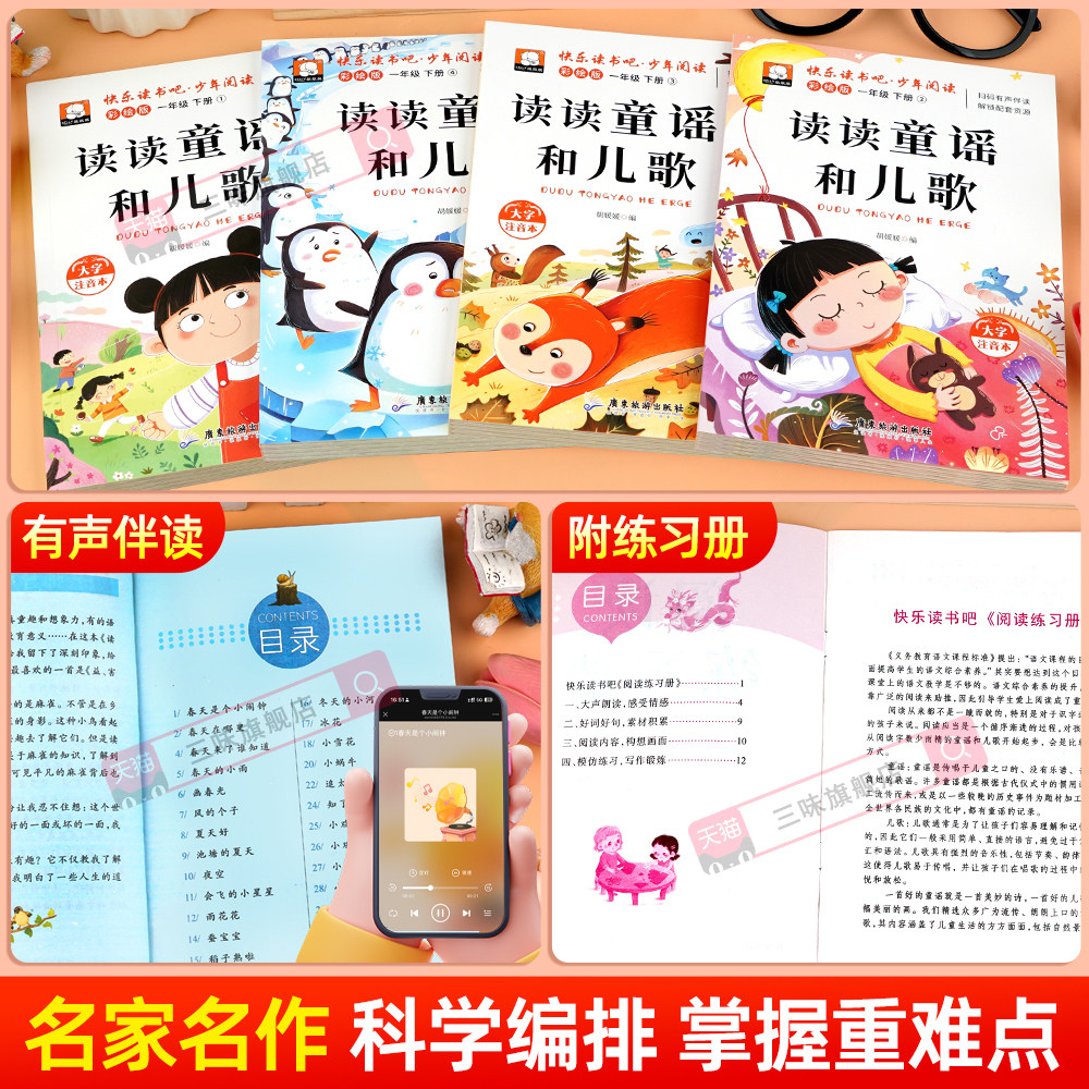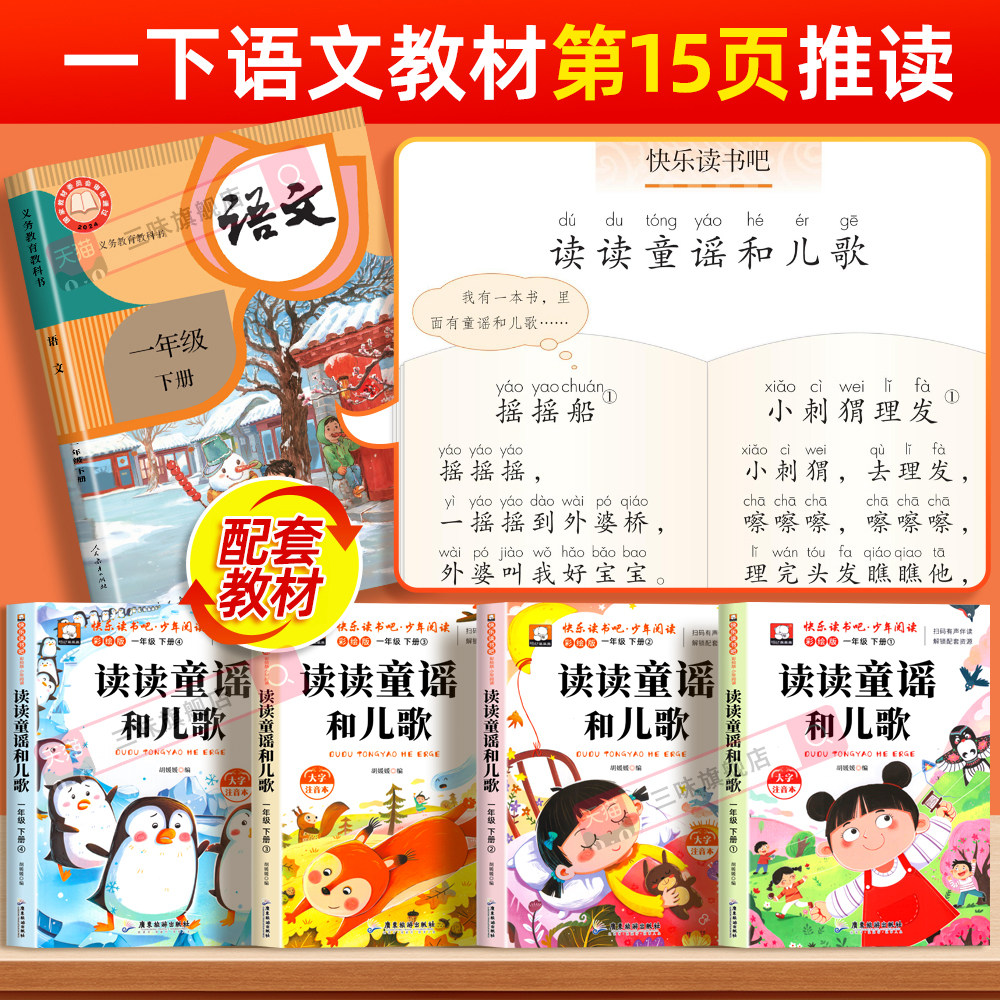 📚 一年级阅读课外书必读下册读读童谣和儿歌和大人一起读全套4册注音版快乐读书吧一上下老师推荐适合1年级看的带拼音书籍下册人教版