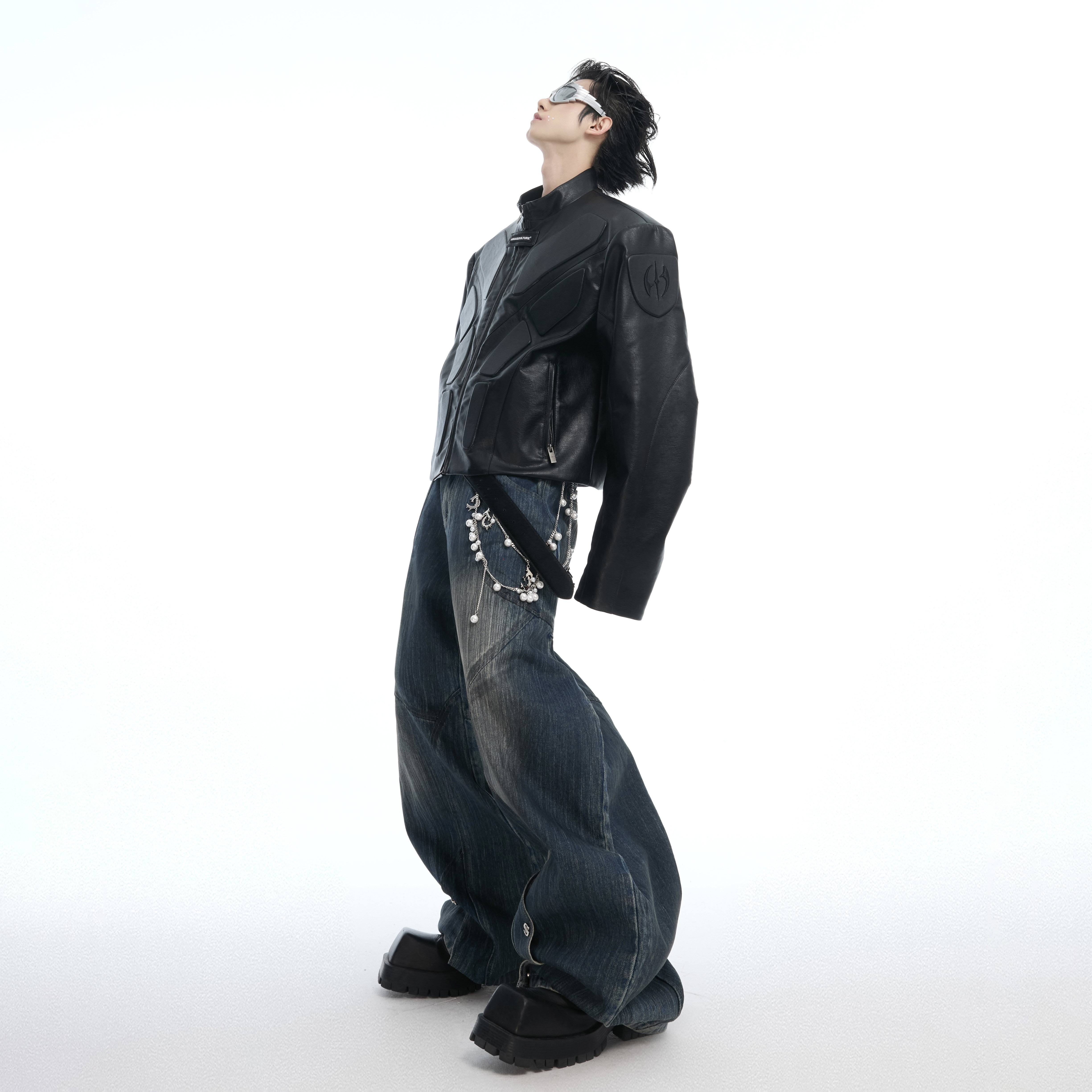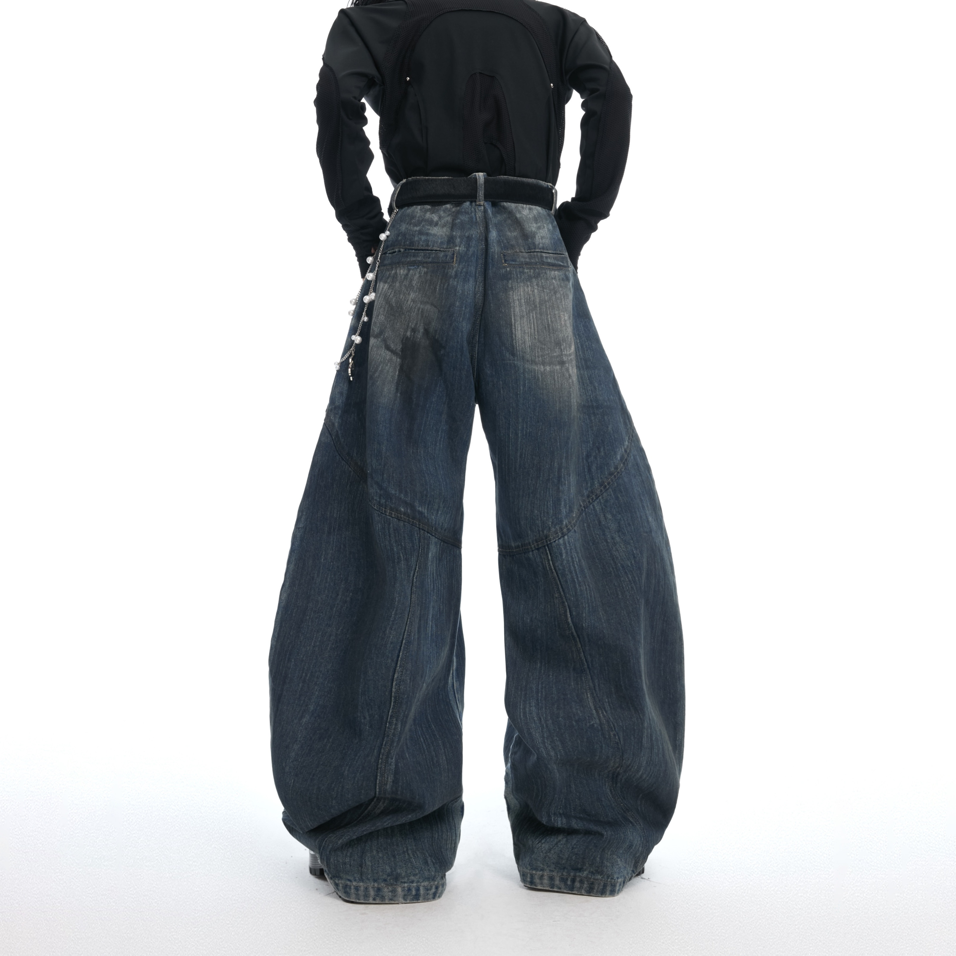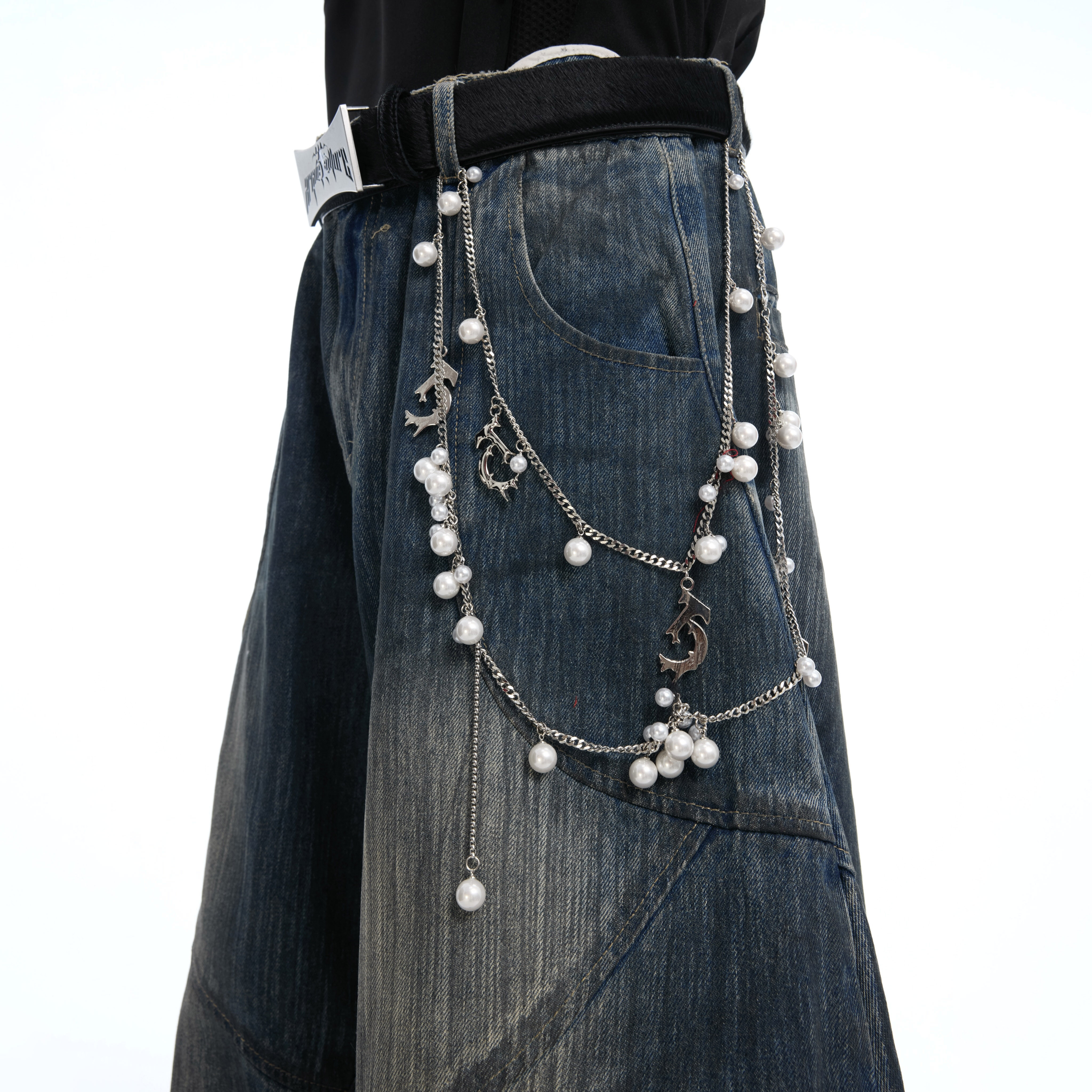 📚 ArguE CulturE小众复古肌理感牛仔裤重磅做旧珍珠挂饰宽松阔腿裤