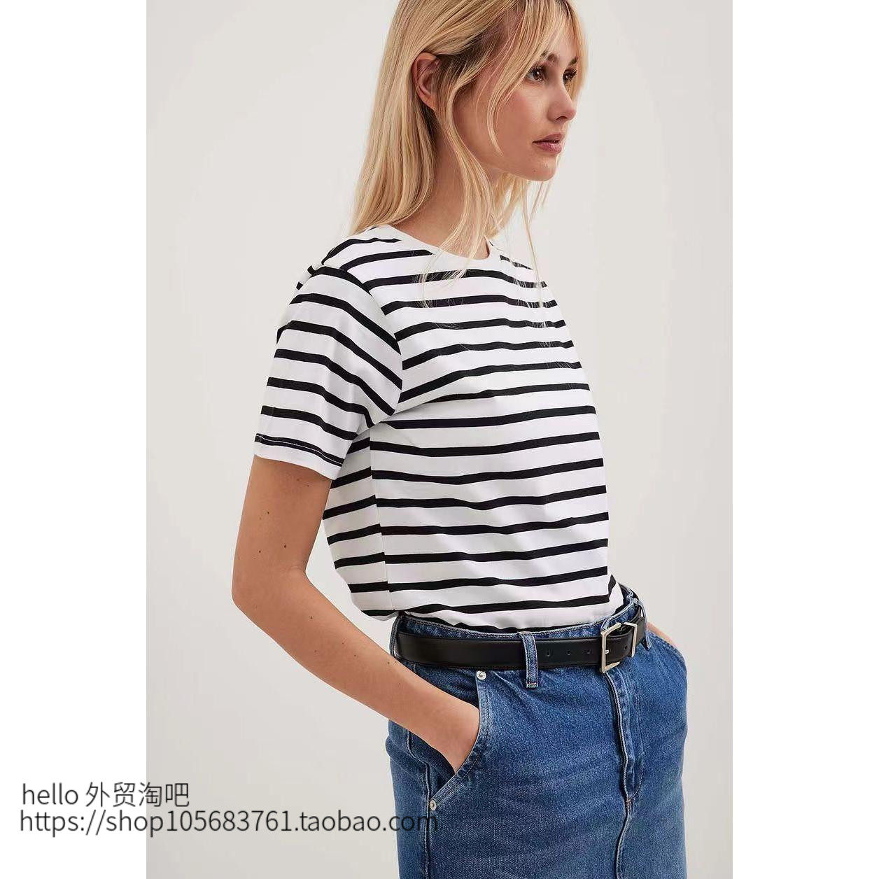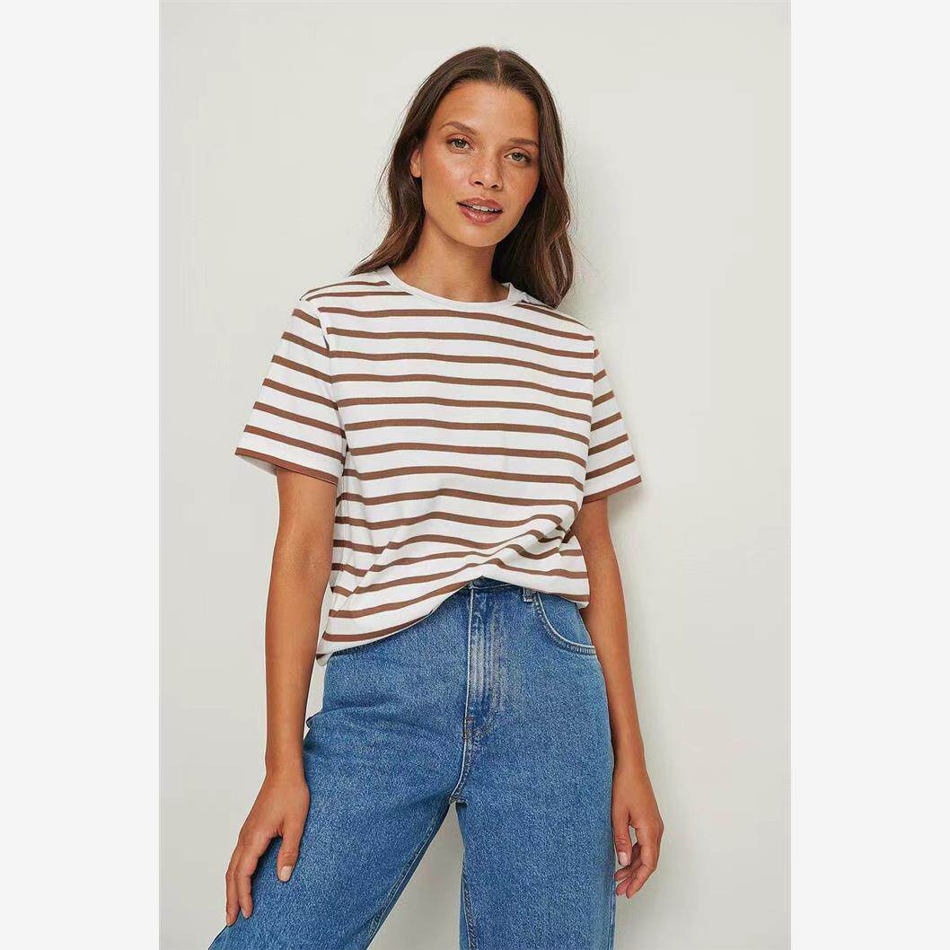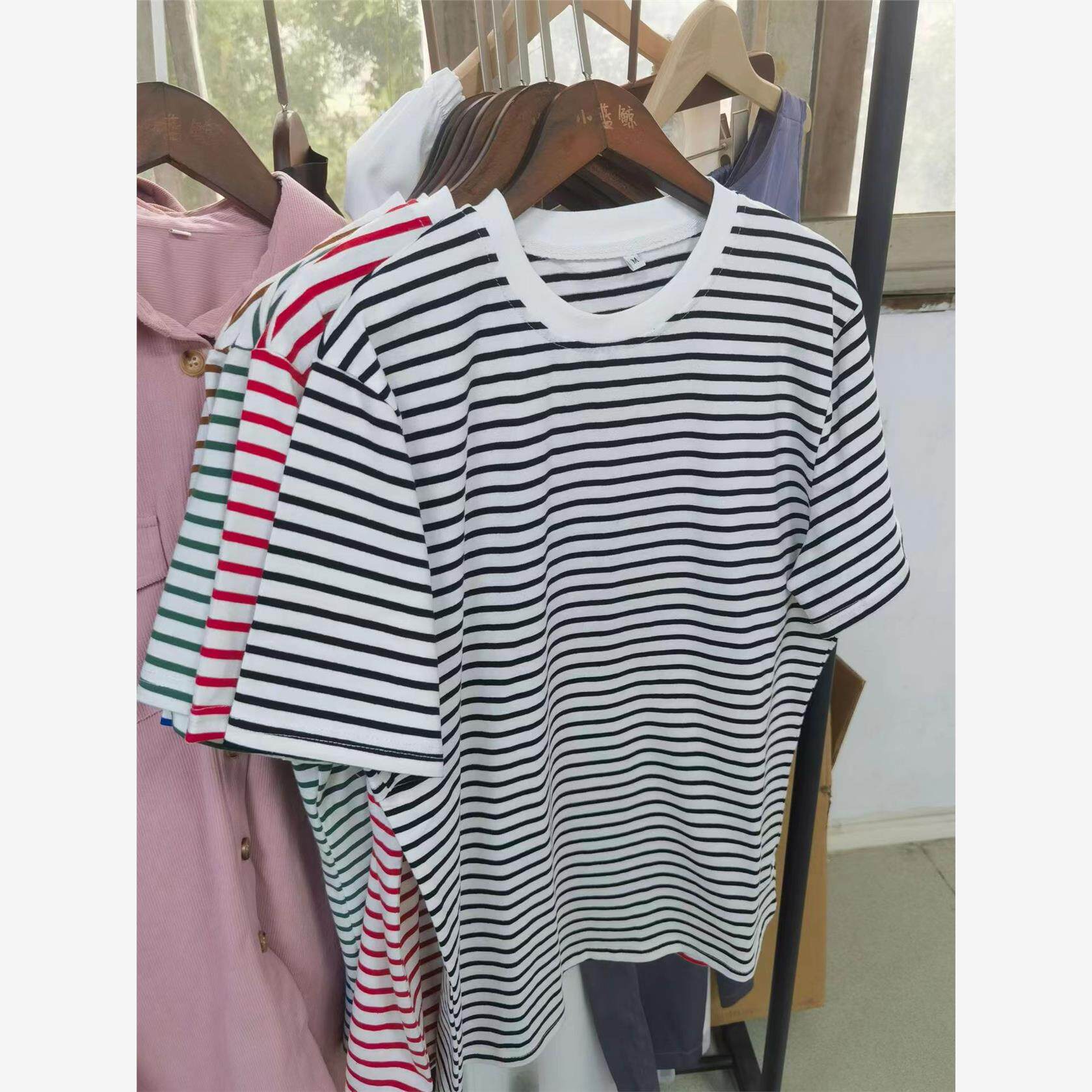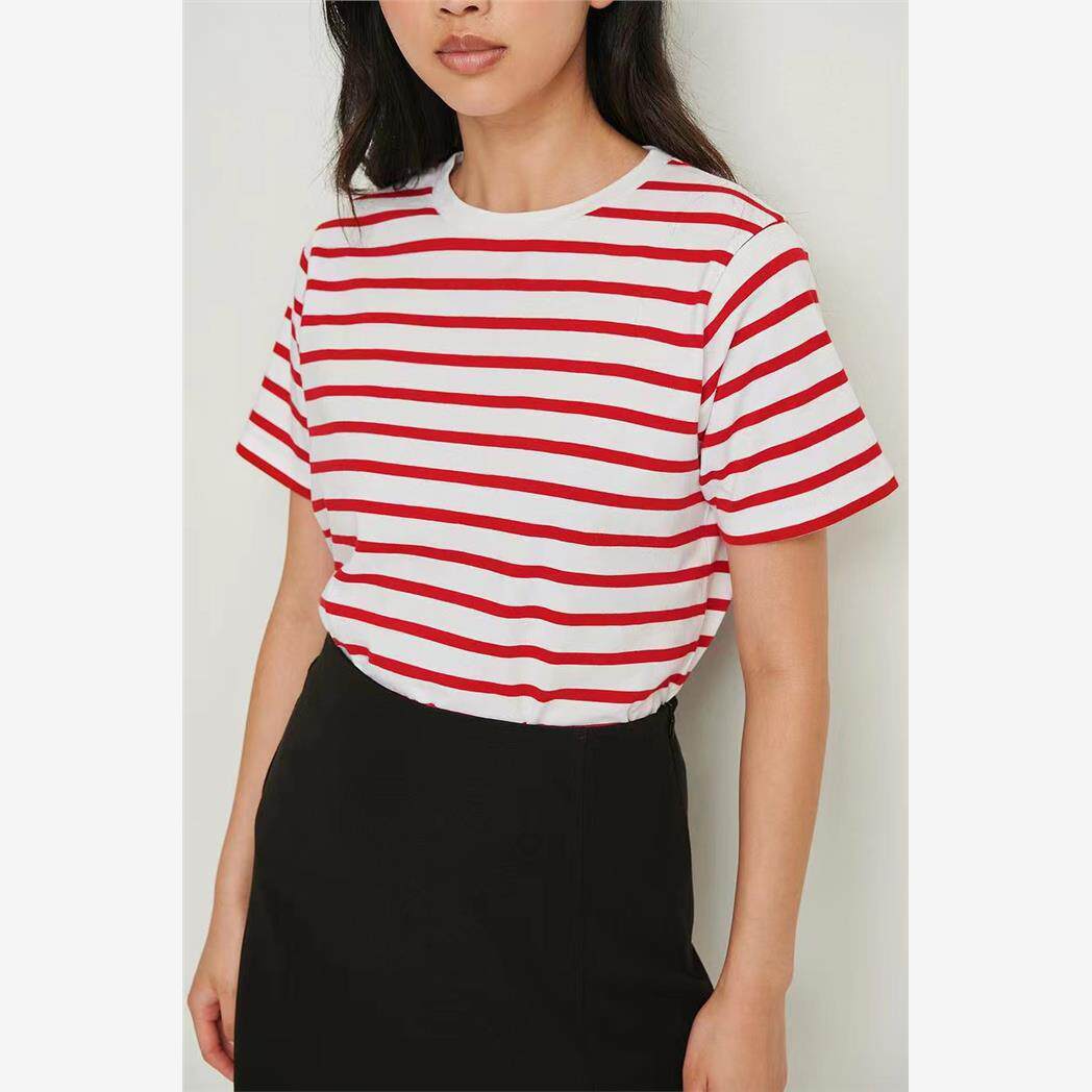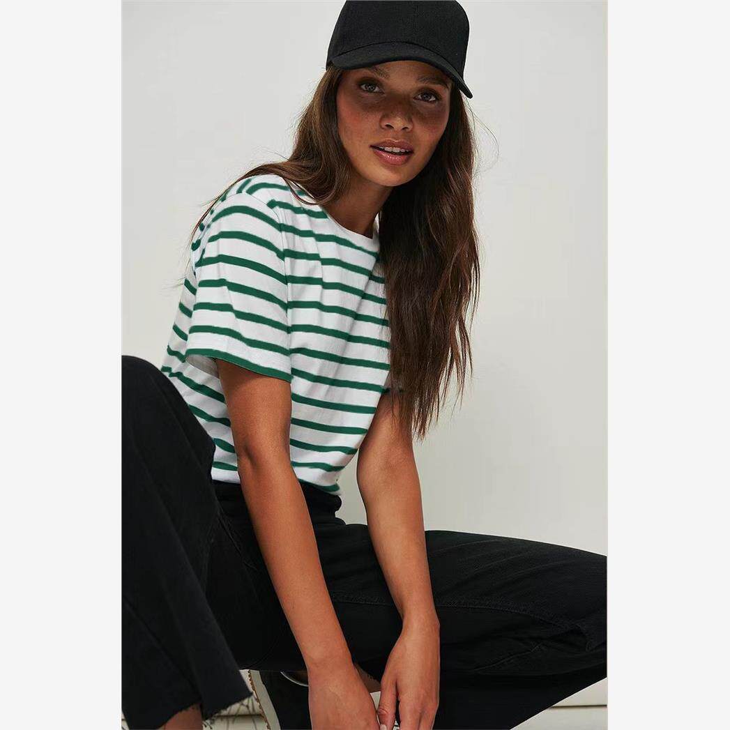📚 欧美时尚休闲上衣圆领短袖条纹T恤 Short sleeve striped T-shirt