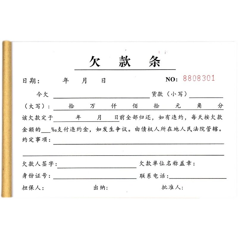 📚 个人欠款条定制二联客户拖欠货款欠条私人饲料店货款欠款协议欠据