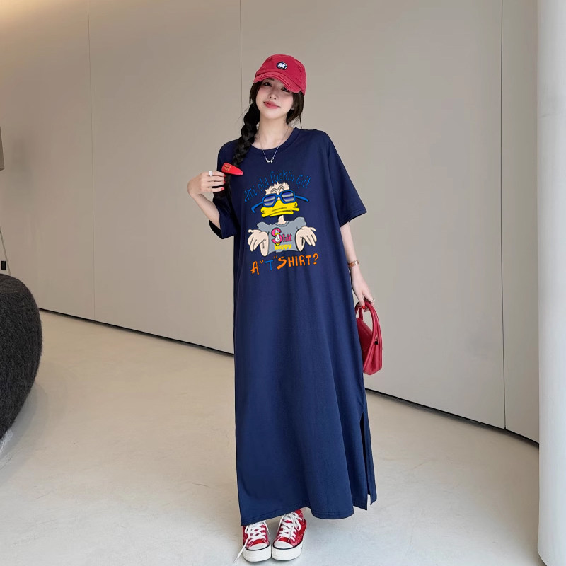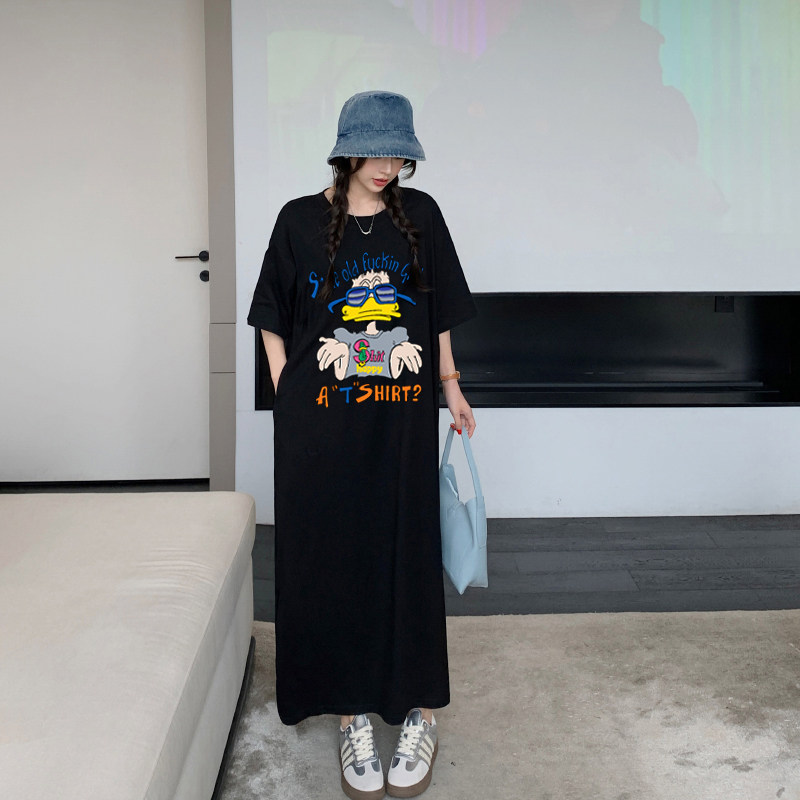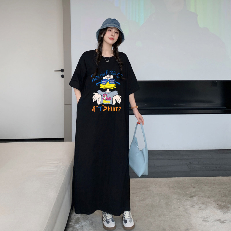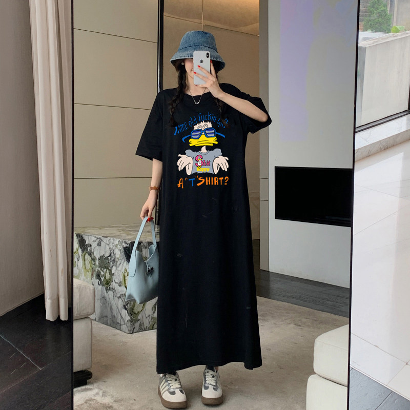📚 高个子超长款2026新款大码200斤夏装T恤裙韩版慵懒及踝长裙连衣裙