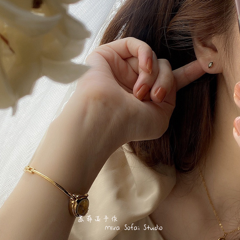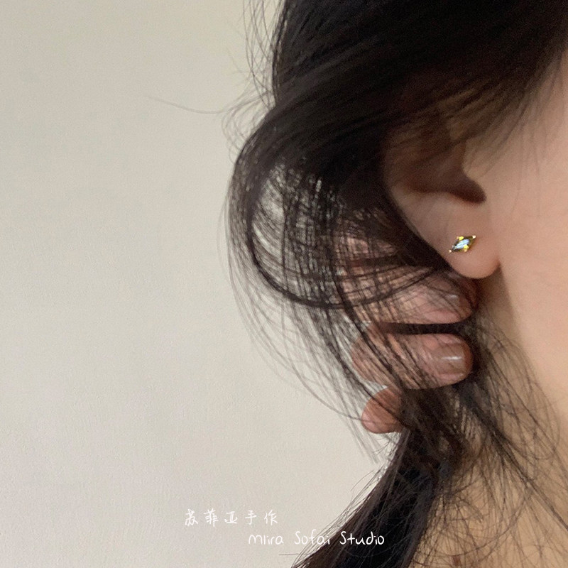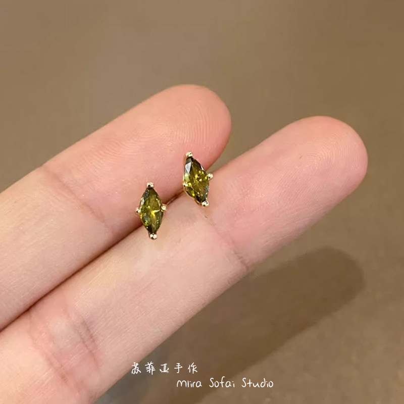 📚 超闪橄榄绿锆石马眼耳钉925纯银复古精致轻奢小巧日常耳饰耳夹女