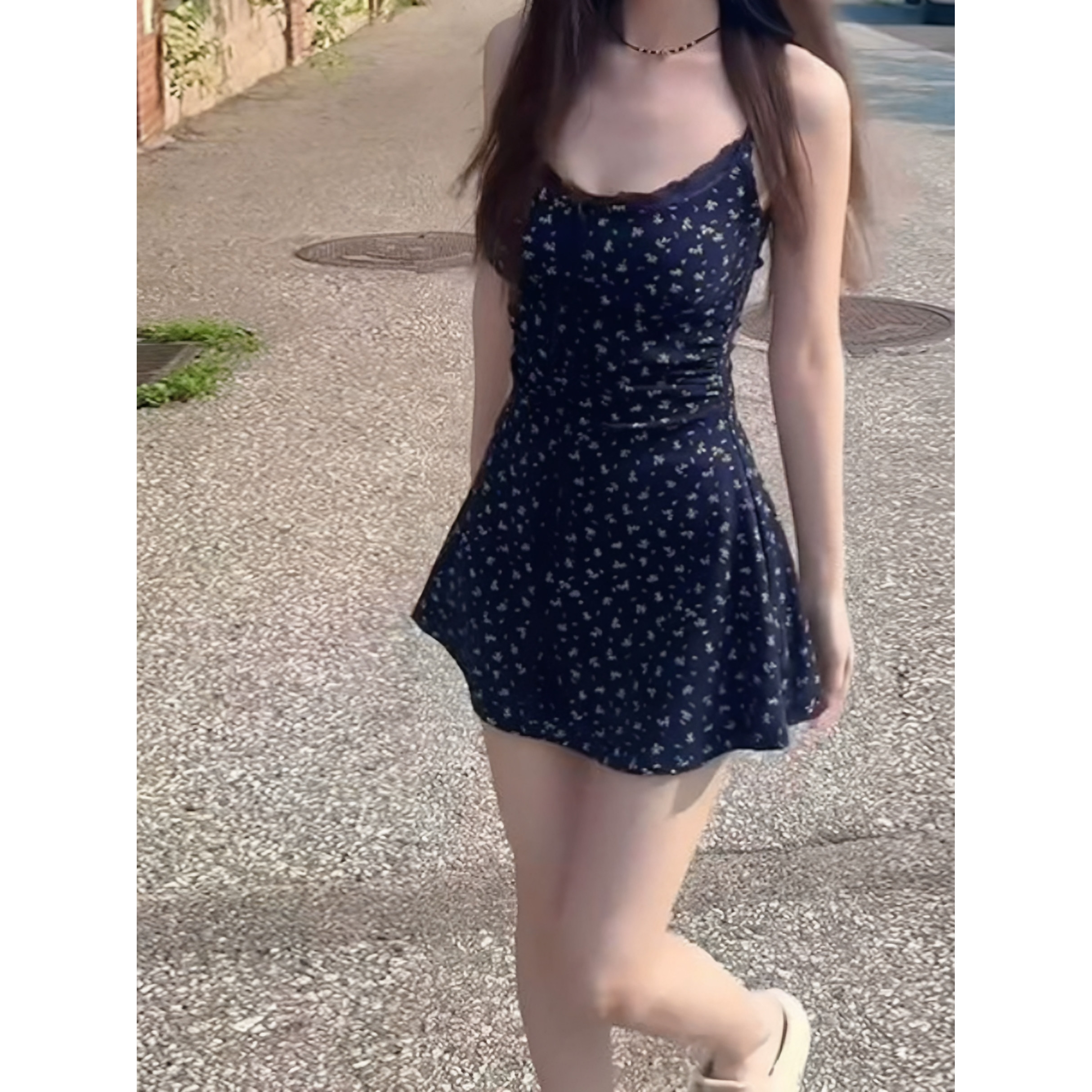 📚 女士碎花收腰吊带连衣裙 Floral waist cinching suspender dress