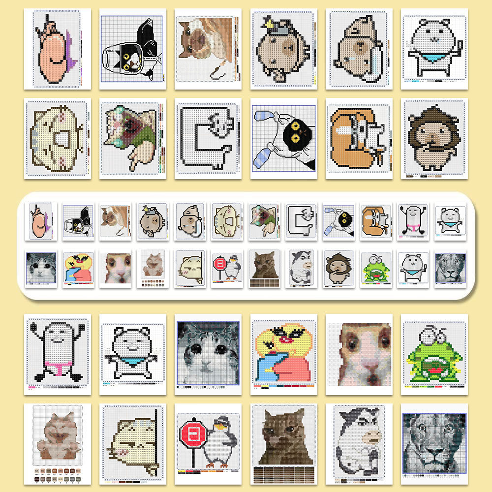 📚 72张表情包拼豆贴纸】爆款网络热梗抽象搞笑表情包拼豆图纸素材