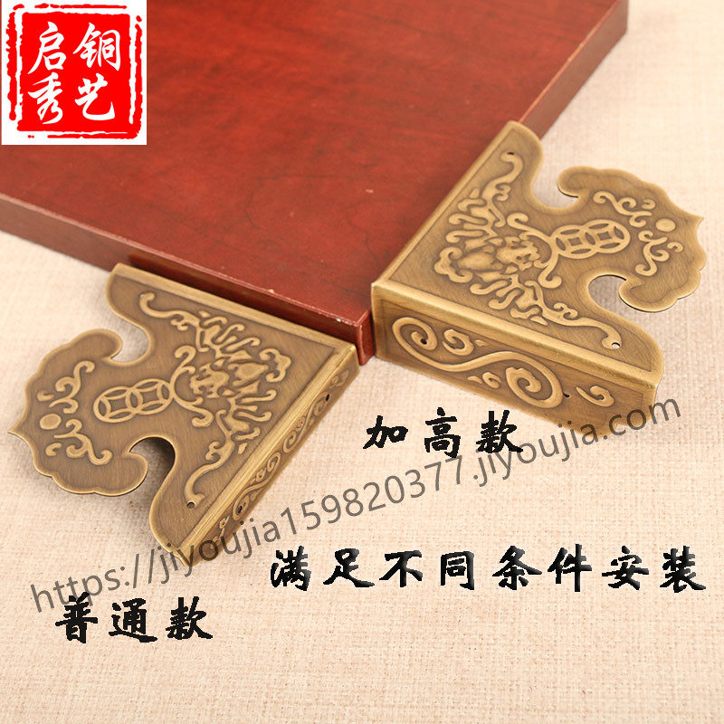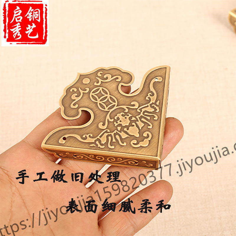 📚 中式仿古包角纯铜护角桌面柜门装饰角花复古刻花三面包角家具角花