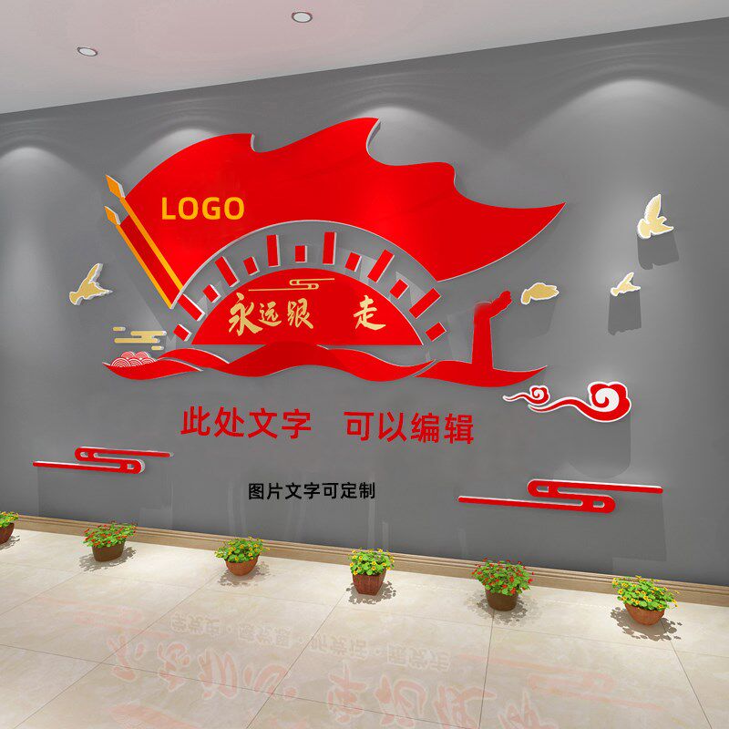 📚 党建主题文化墙面建n设装饰布置党员活动会议室支部宣传办公室标
