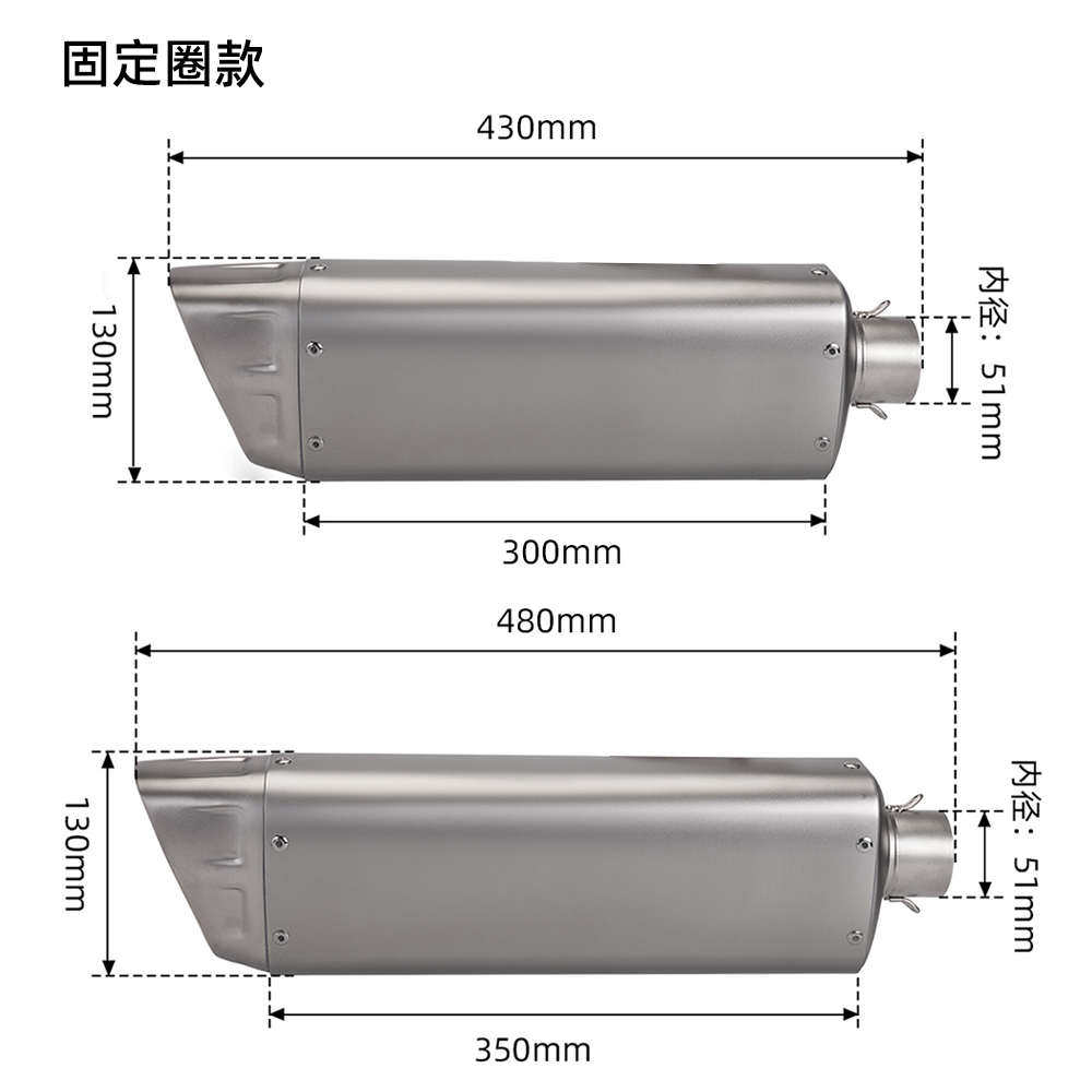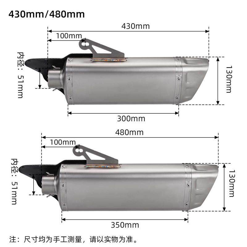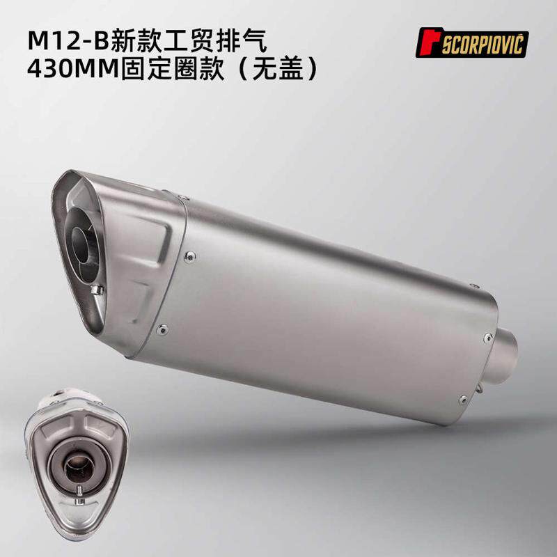 📚 摩托车改装排气管M12-B带盖K12-B无盖 51mm通用尾段不锈钢 消声器