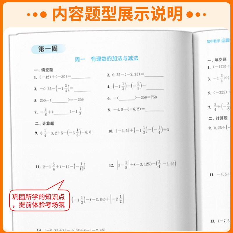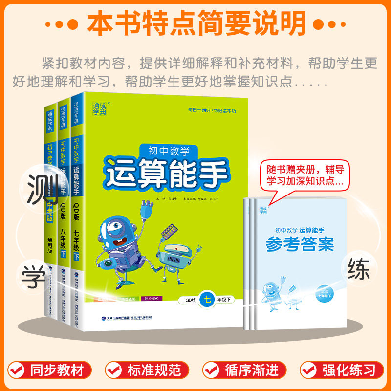 📚 初中数学运算能手青岛版七年级八年级九年级上册下册同步练习册口算题卡计算达人高手强化专项训练题数学思维训练