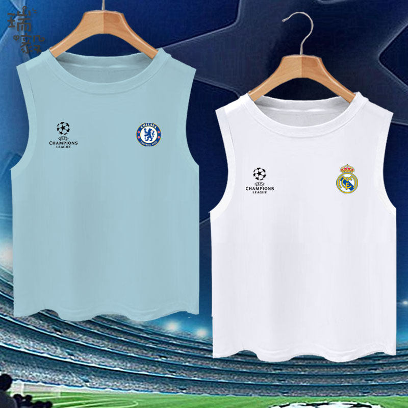 📚 欧冠切尔西皇马拉齐奥马竞大巴黎足球迷服背心男女儿童装无袖T恤