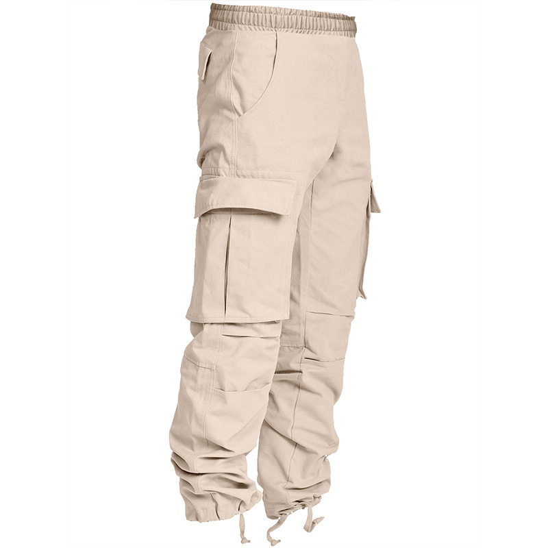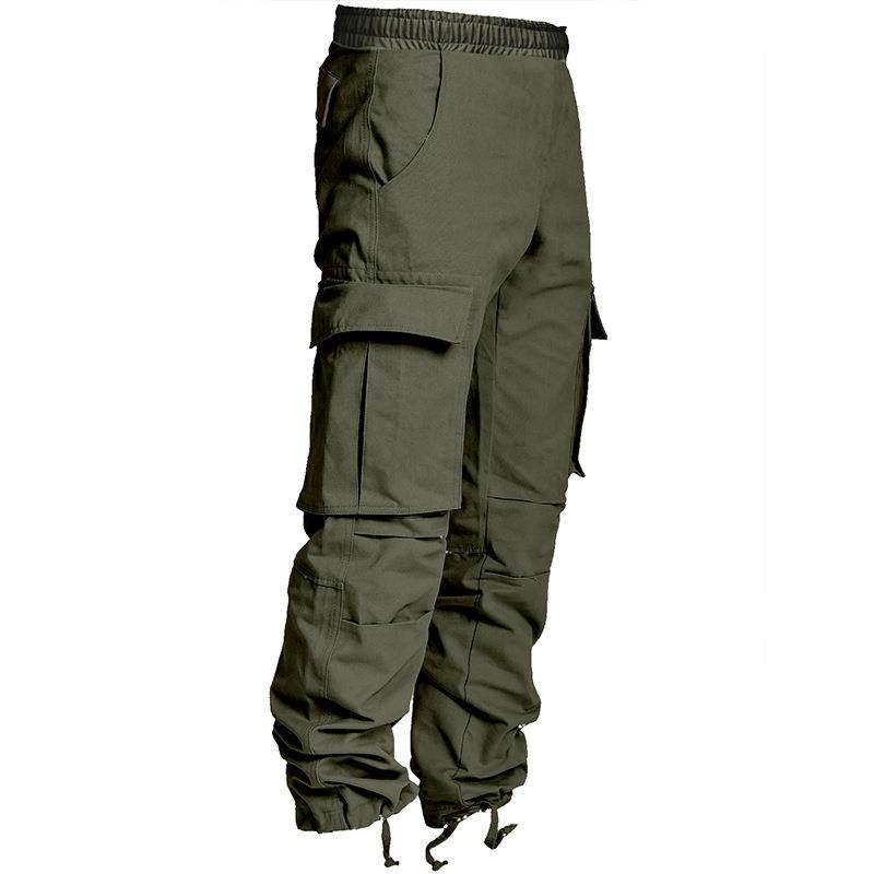 📚 Men Solid Casual Pants Multi-Pocket Army Full Length Trouser