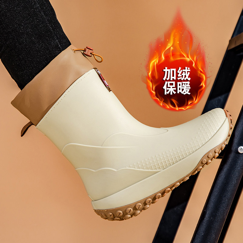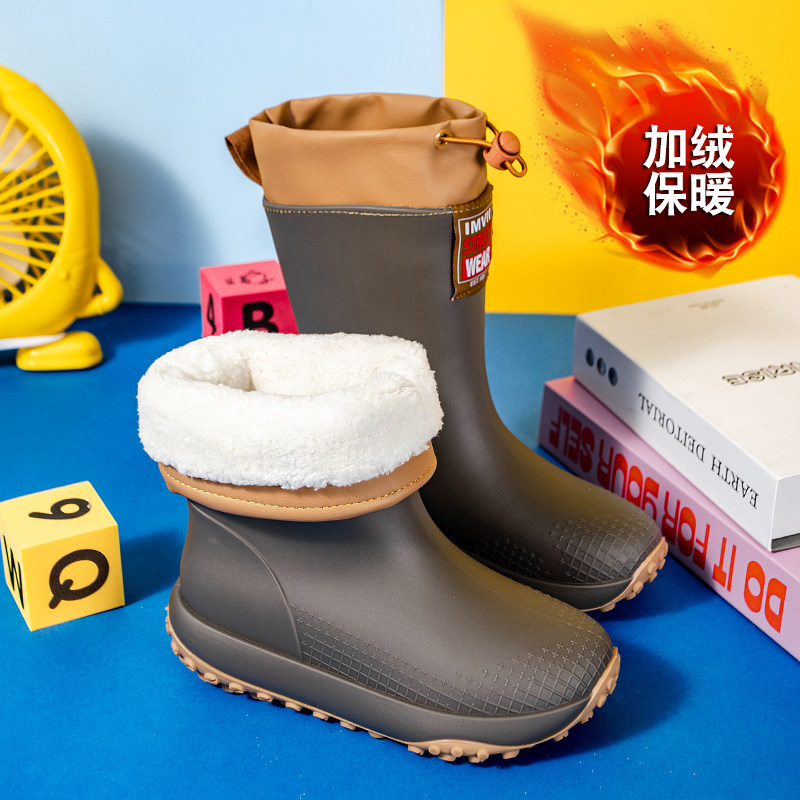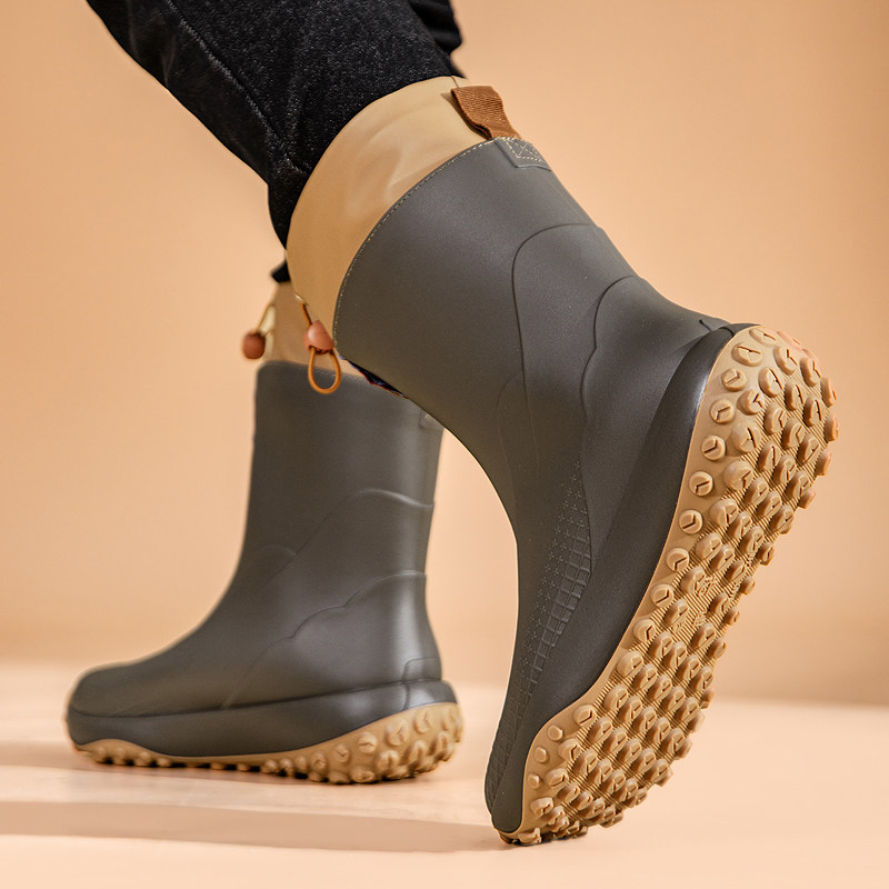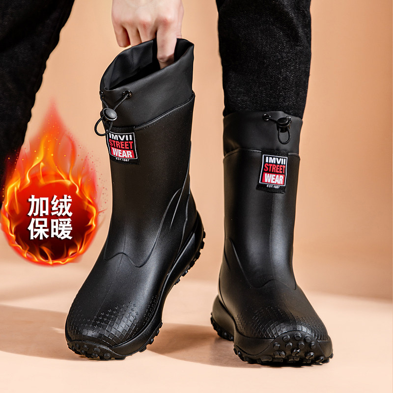 📚 冬季保暖加棉水鞋男款防水防滑钓鱼专用男士雨鞋加厚加绒雨靴胶鞋