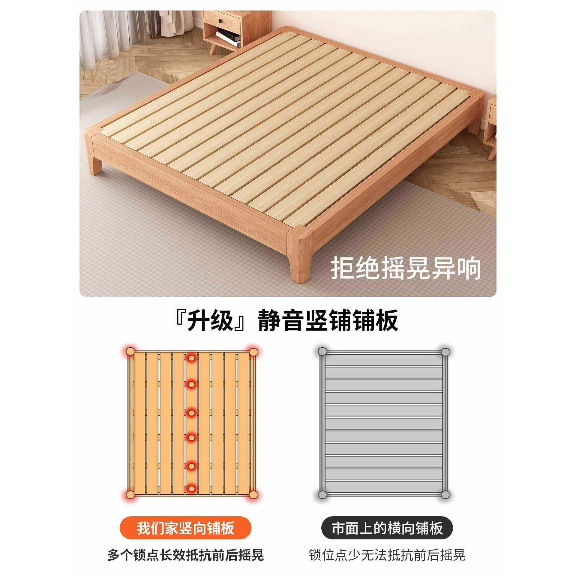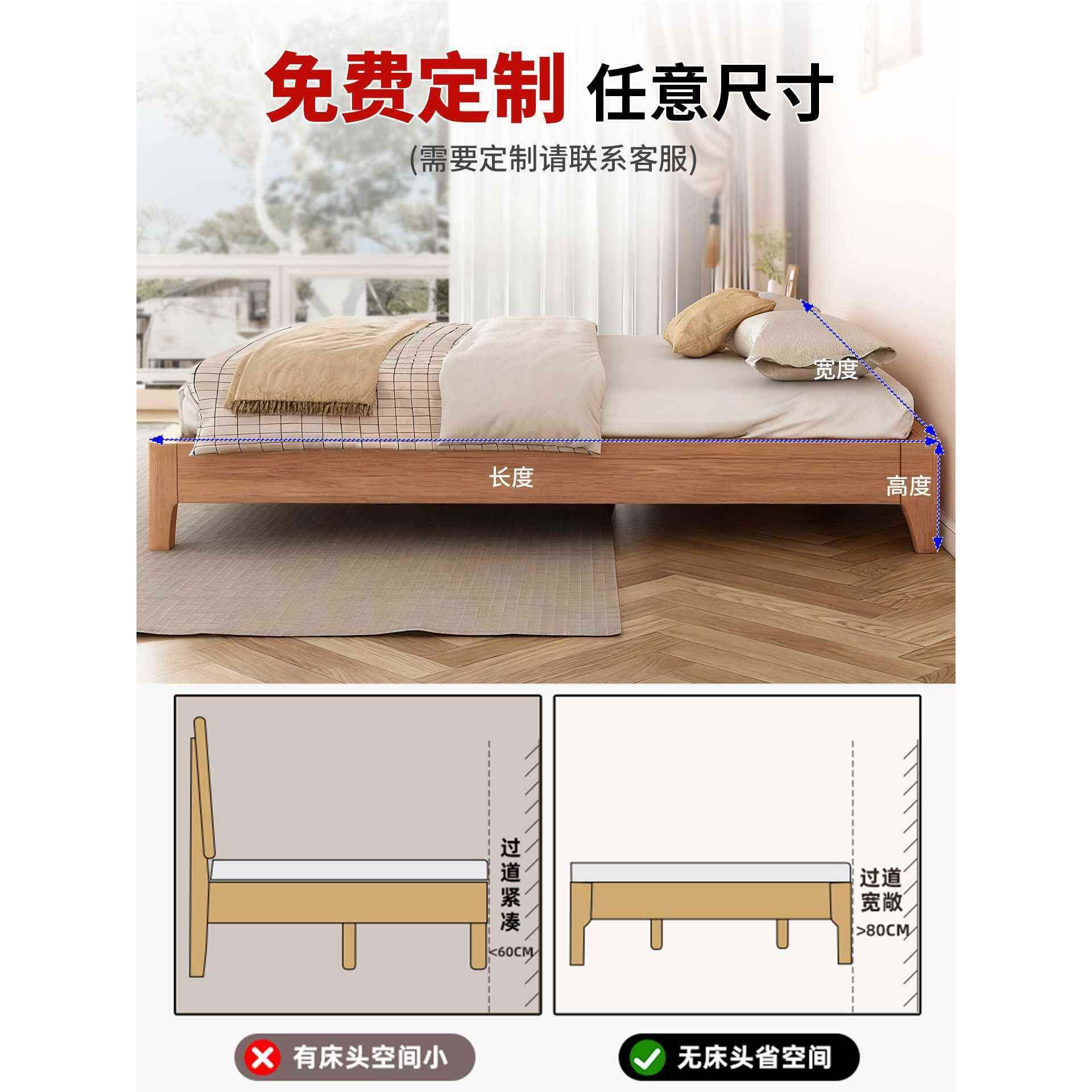 📚 实木床家用无床头1米8双人床1.5米榻榻米排骨架可定 制1.2单人床