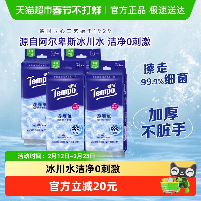 📚 【升级冰川水】Tempo/得宝纯水迷你湿厕纸湿纸巾7片*24包新旧交替