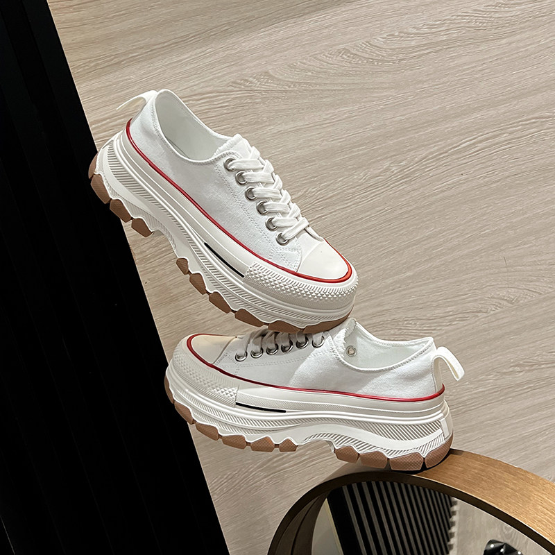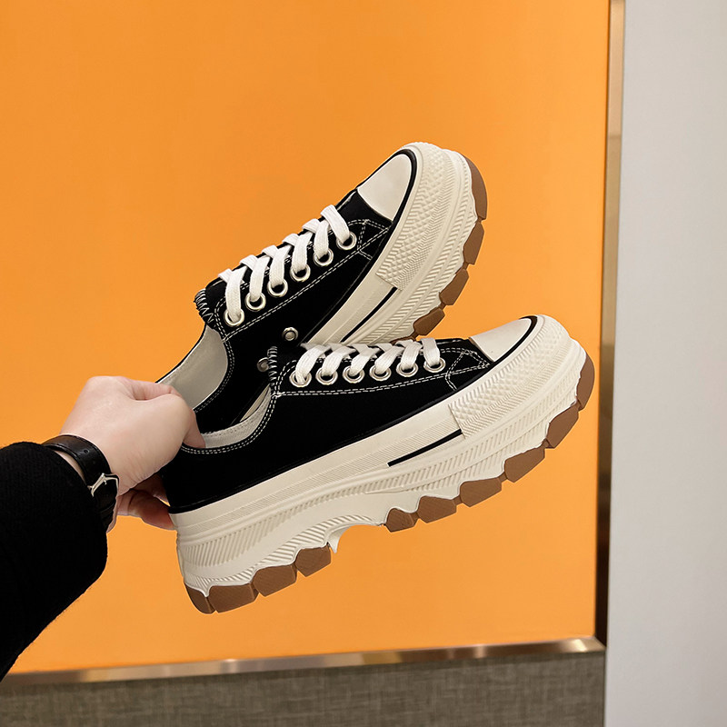 📚 帆布鞋女2026年秋季新款百搭厚底增高松糕透气半拖小白鞋休闲百搭