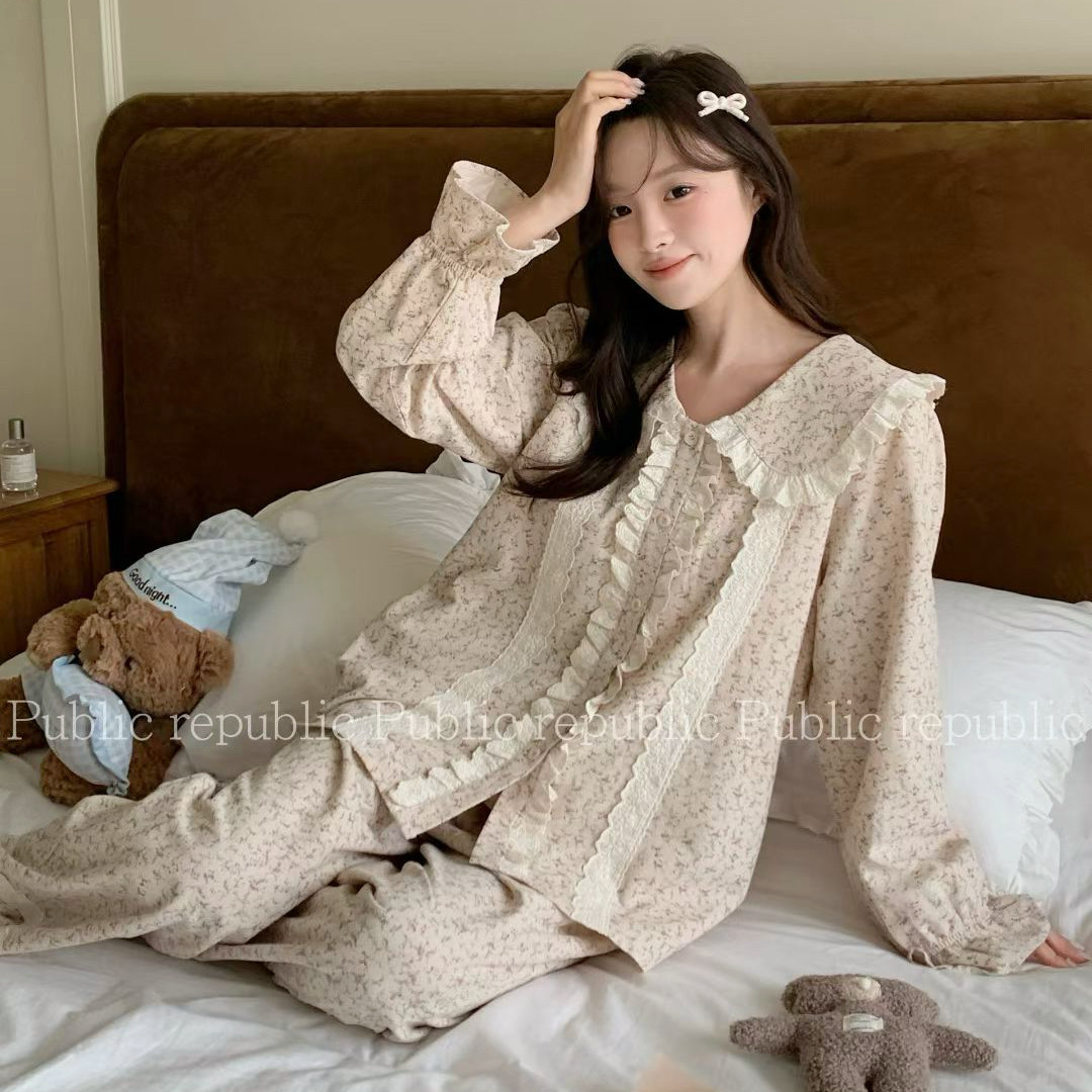 📚 Public republic韩国秋冬纯棉磨毛娃娃领花边碎花开衫家居服睡衣