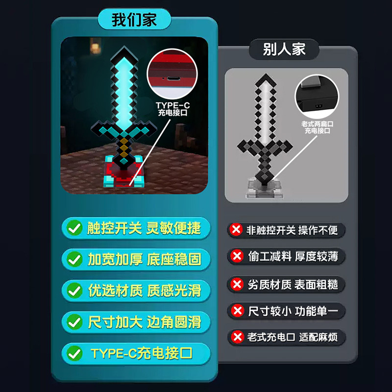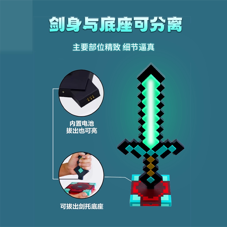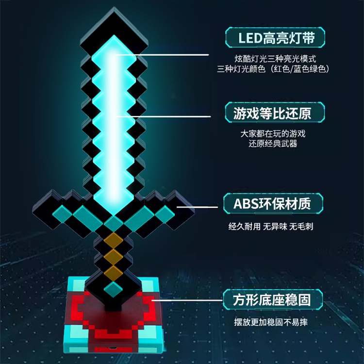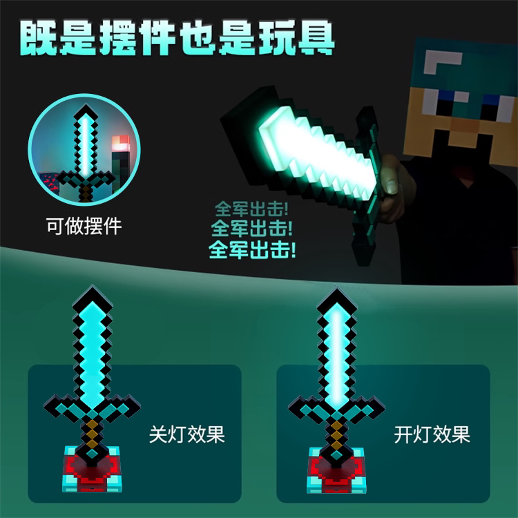 📚 我的世界像素MC七色钻石剑男女孩发光宝剑解压Minecraft玩具礼物