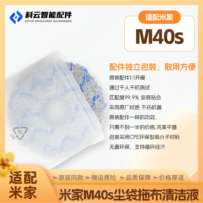 📚 适配小米米家M40S扫地机器人配件滚边刷清洁液拖抹布集尘垃圾袋