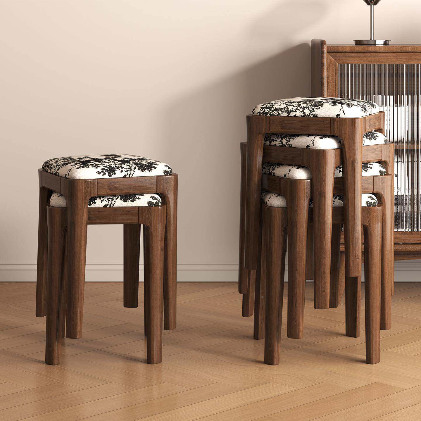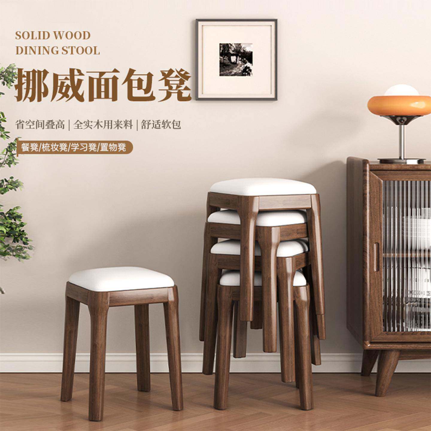 📚 座明峥家厂实木叠OPN放凳子家用矮具客厅中古风餐桌凳凳来客加备
