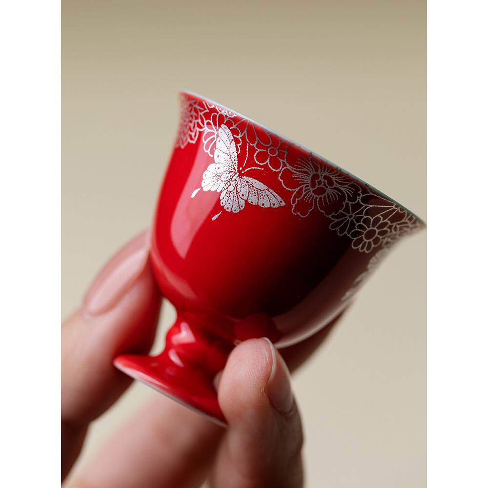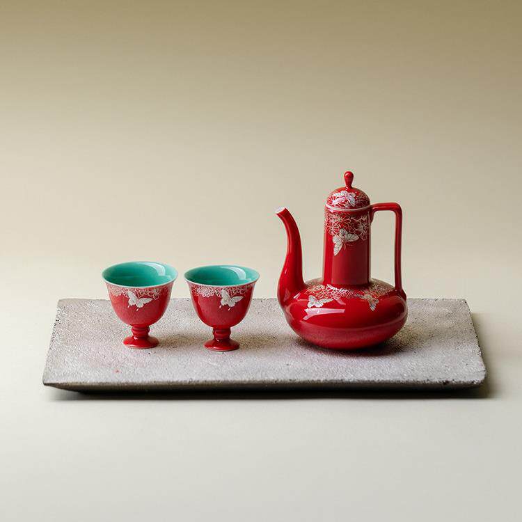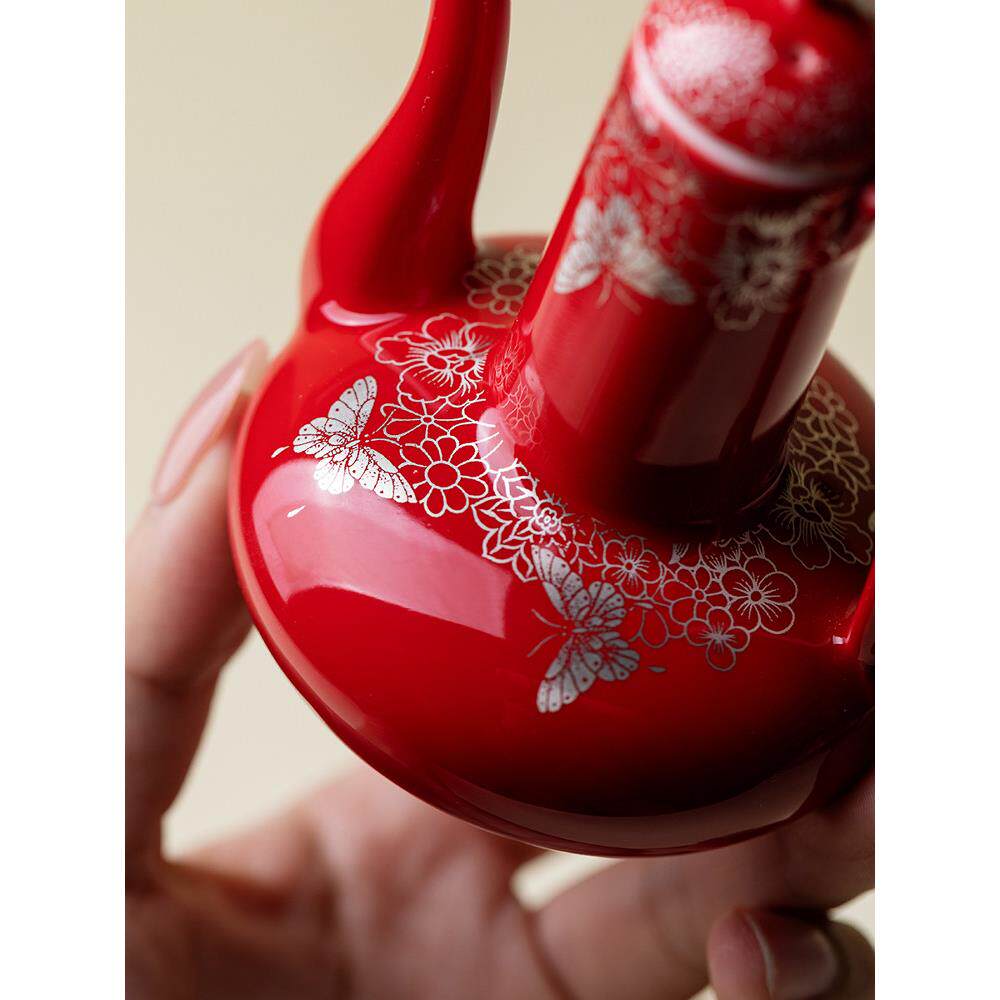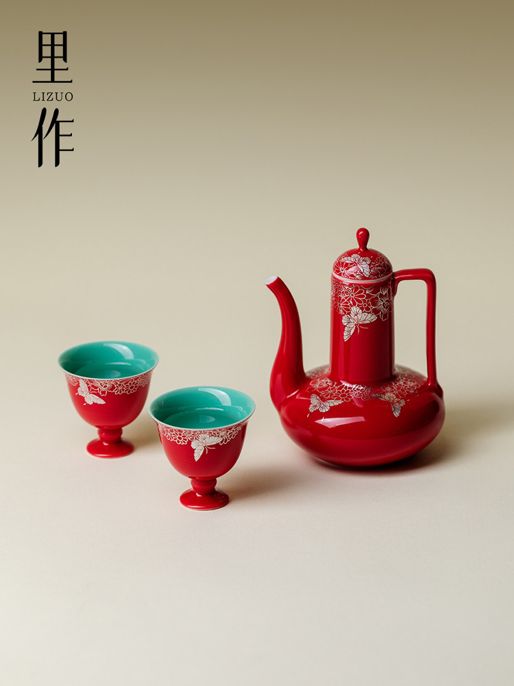 📚 李左中国红酒套装家用新中国风陶瓷白葡萄酒错金银蝴蝶爱花酒器酒