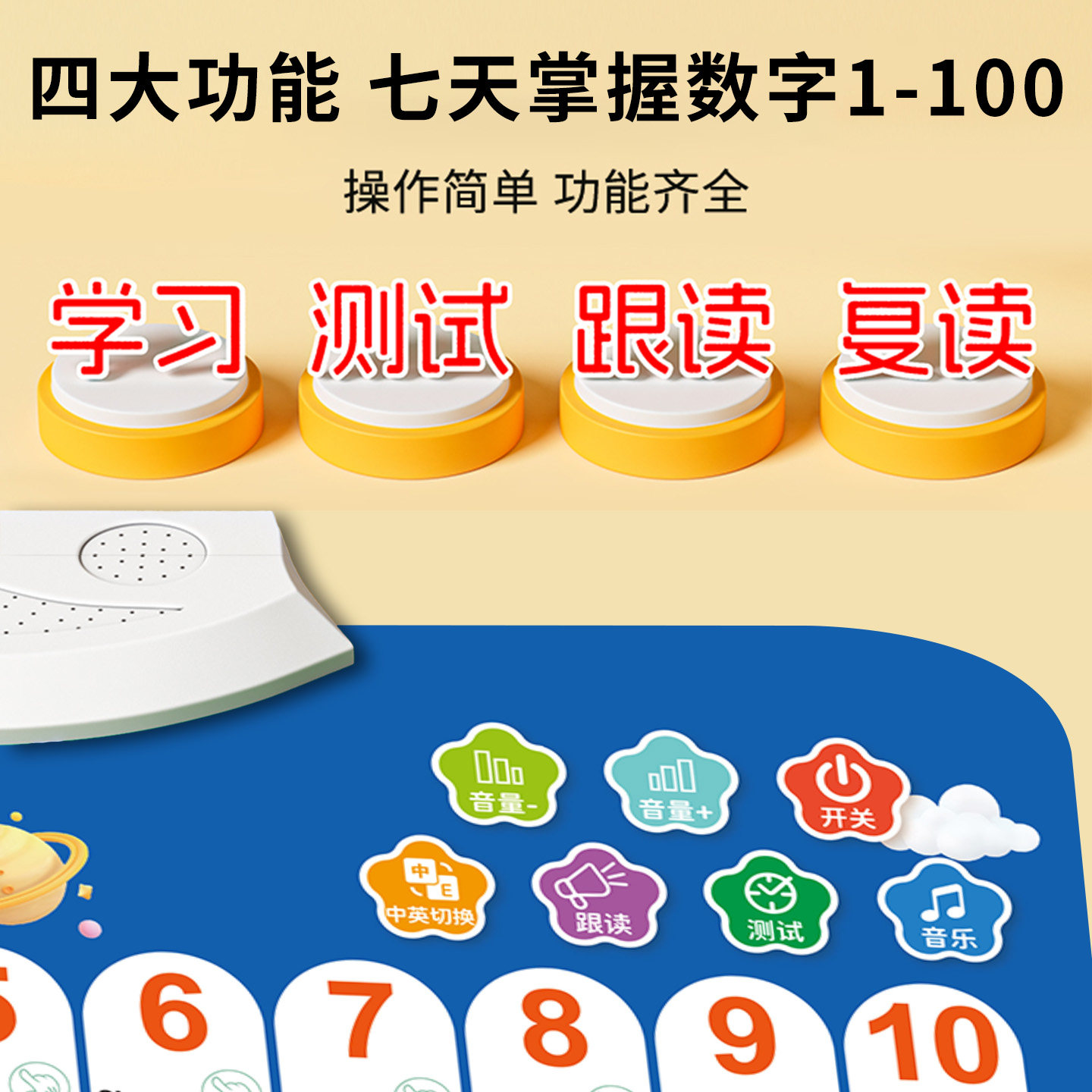 📚 数字1到100认知启蒙表墙贴整体认读婴幼儿童有声早教挂图发声神器