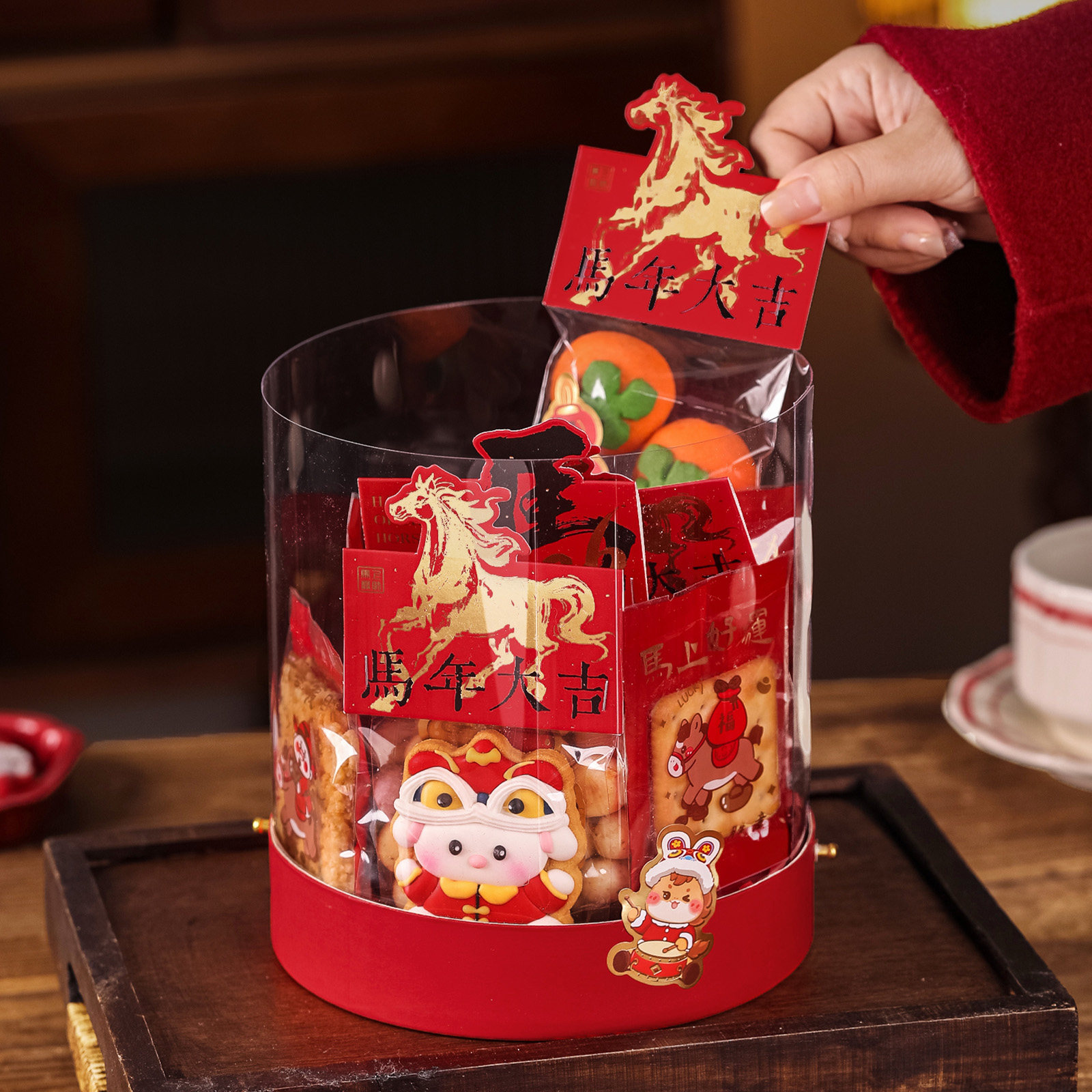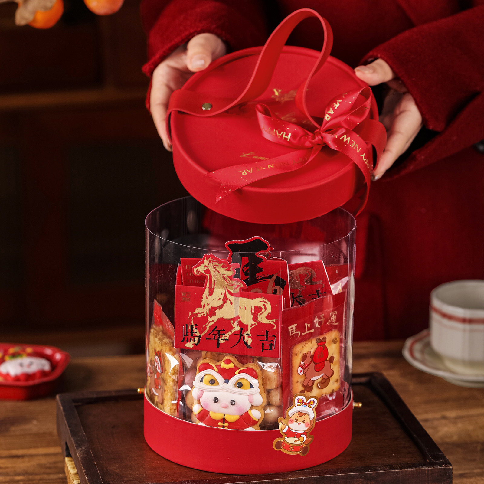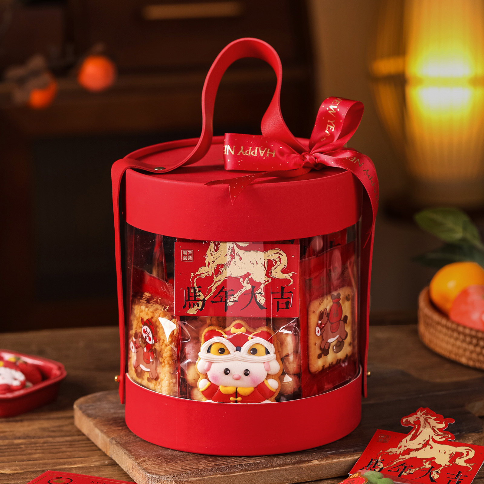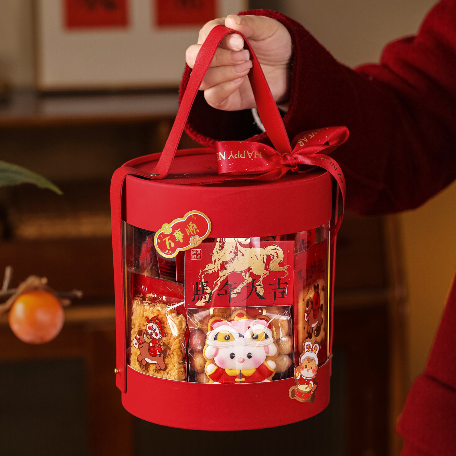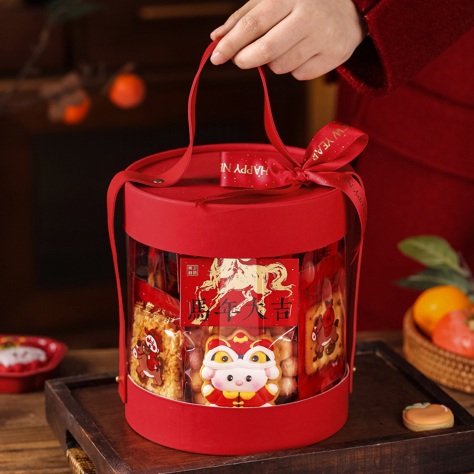 📚 透明抱抱桶新年礼盒包装盒手提烘焙雪花酥牛轧糖曲奇饼干糖果盒空