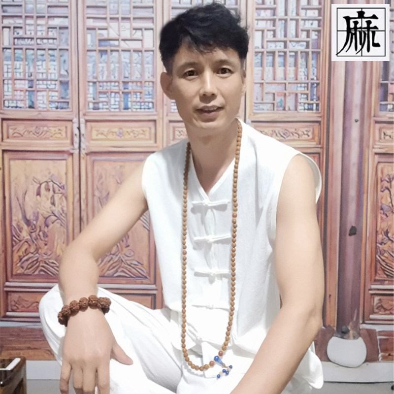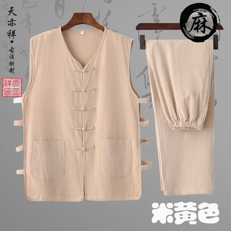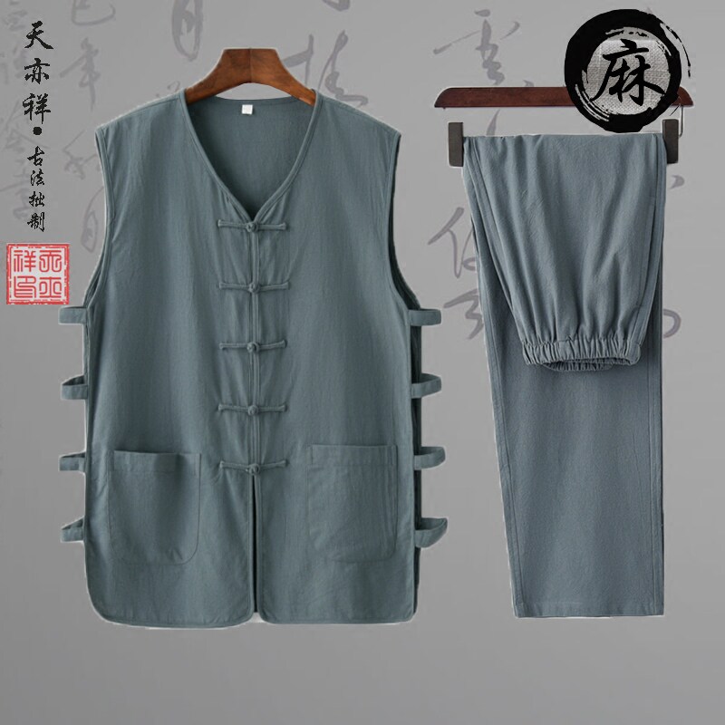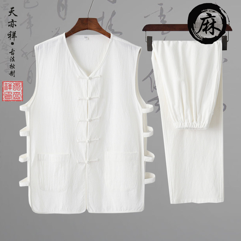 📚 夏季薄款棉麻中老年爸爸中式汗背心马甲长裤两件套汉马褂老头衫男