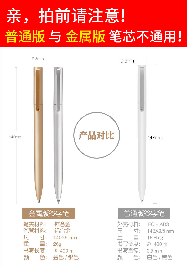 📚 小米米家签字笔金属旋转黑色水专用笔芯中性笔学生文具办公书写