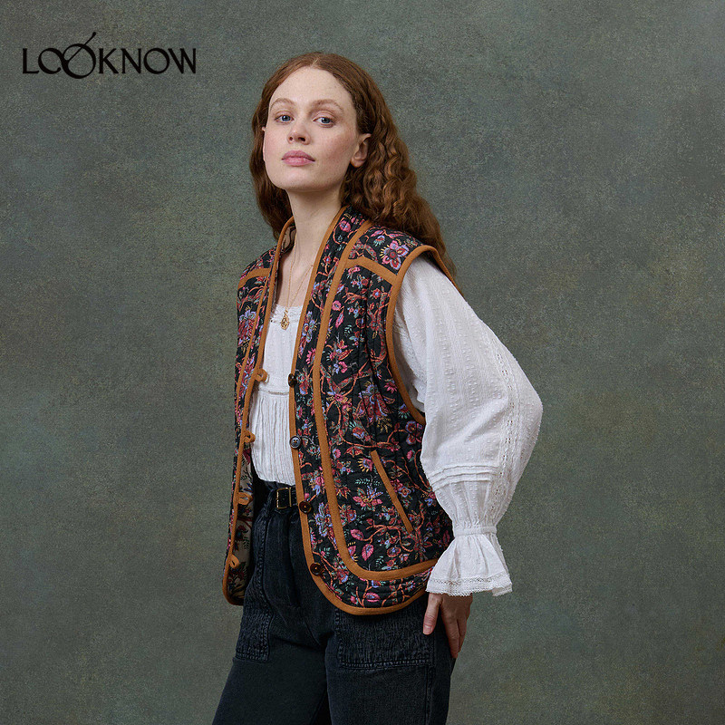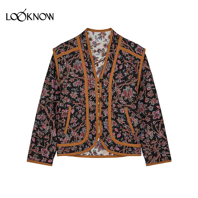 📚 louise misha x LOOKNOW黑色印花V领夹克