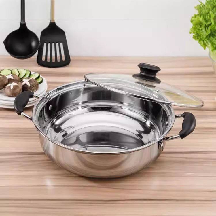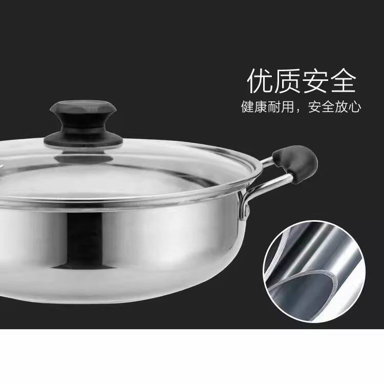📚 不锈钢火锅 带盖加厚汤锅加厚涮锅平底汤锅商用电磁炉火锅盆清汤