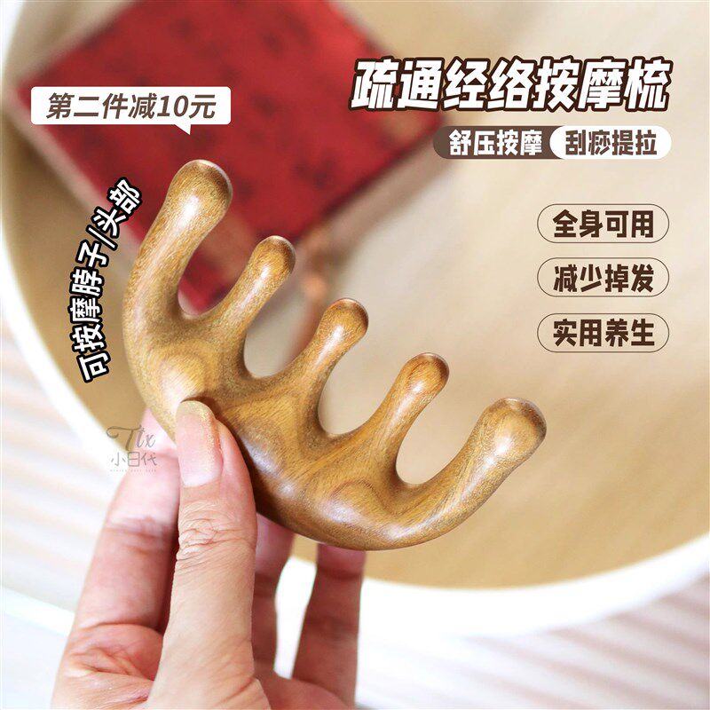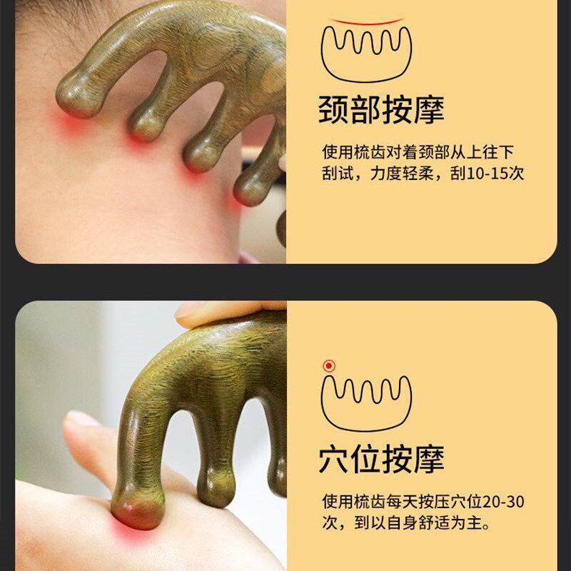 📚 养生i备~南美天然绿檀五经按摩木梳头部经络乳腺刮痧防脱梳子