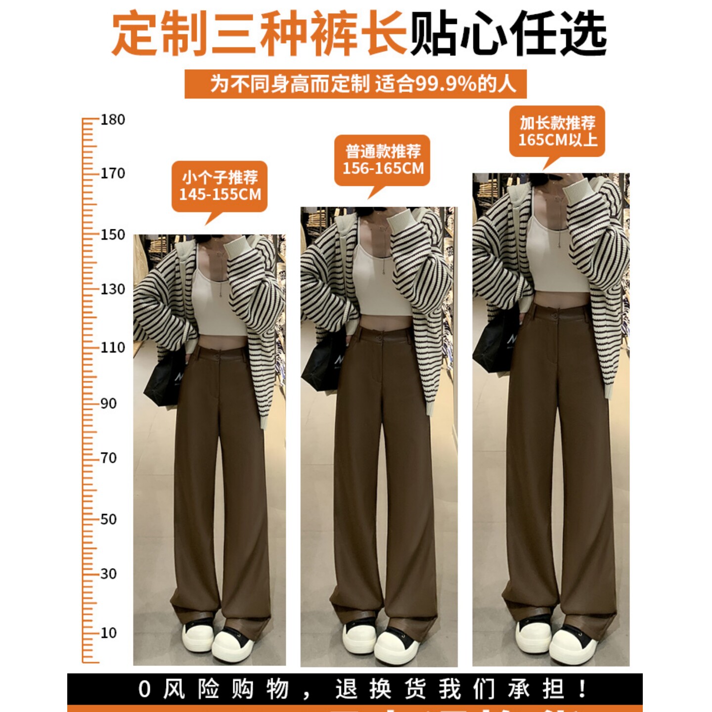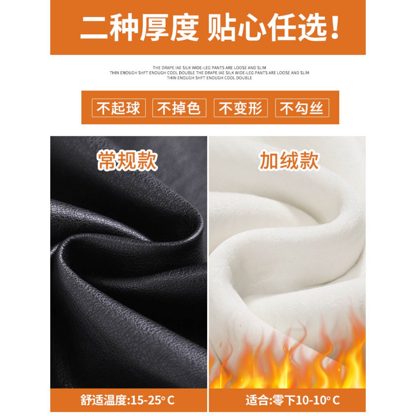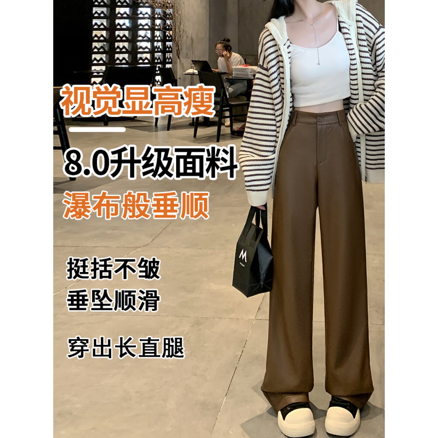 📚 大码卡其色高级感加绒皮裤女冬季新款小个子美式高腰pu皮阔腿裤子