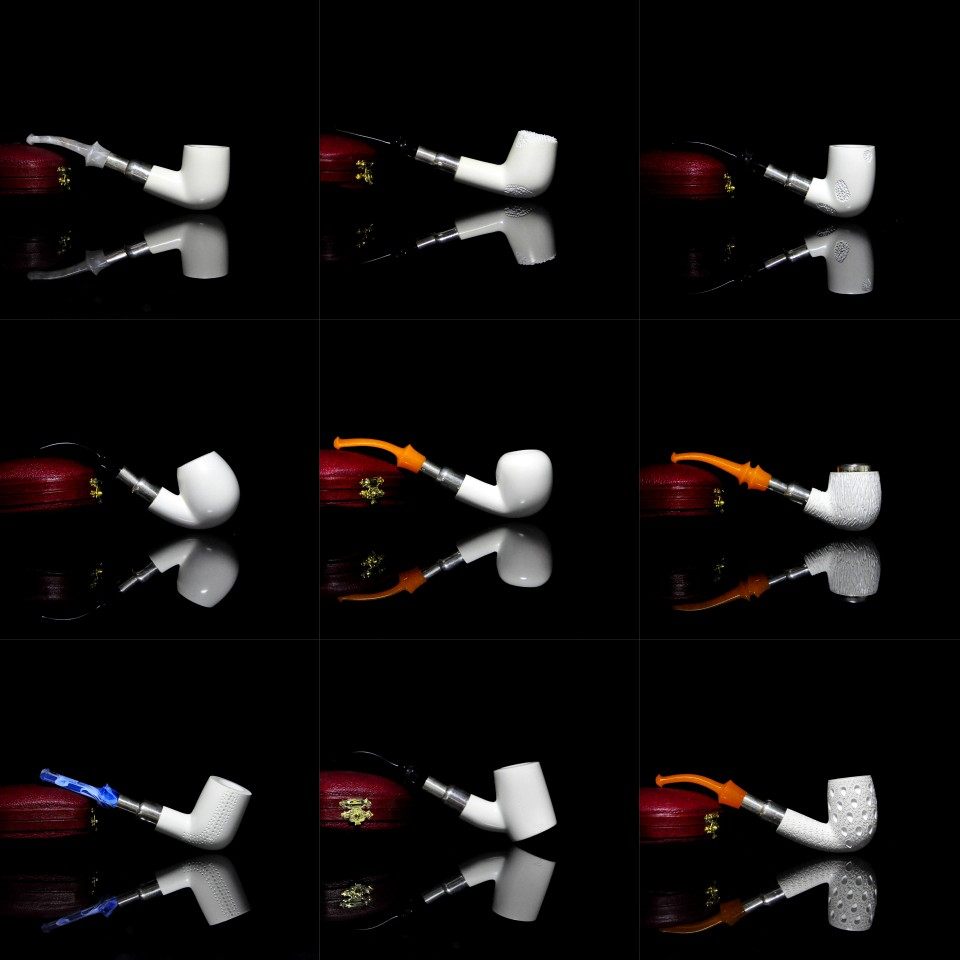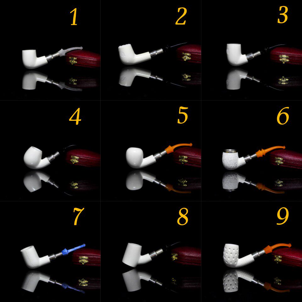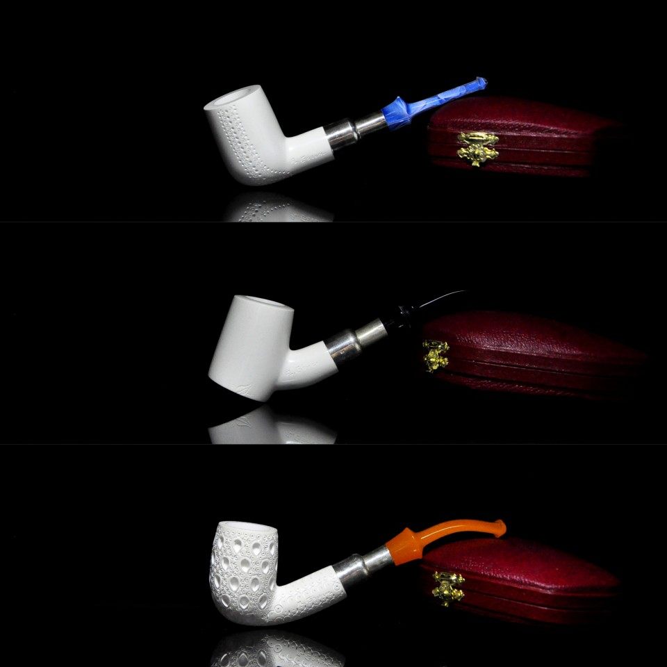 📚 海泡石军插烟斗双银圈中号白色原石光面雕刻3㎜烟道收纳盒包邮款