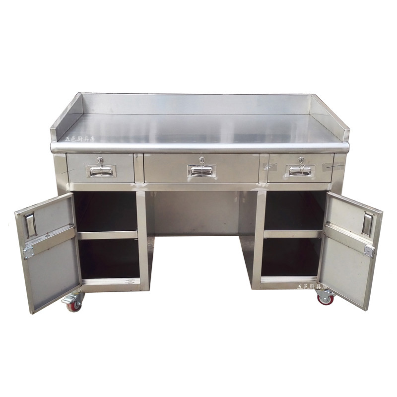 📚 不锈钢办公电脑桌带轮钱柜店铺z收款台定制柜抽屉带锁柜写字售卖