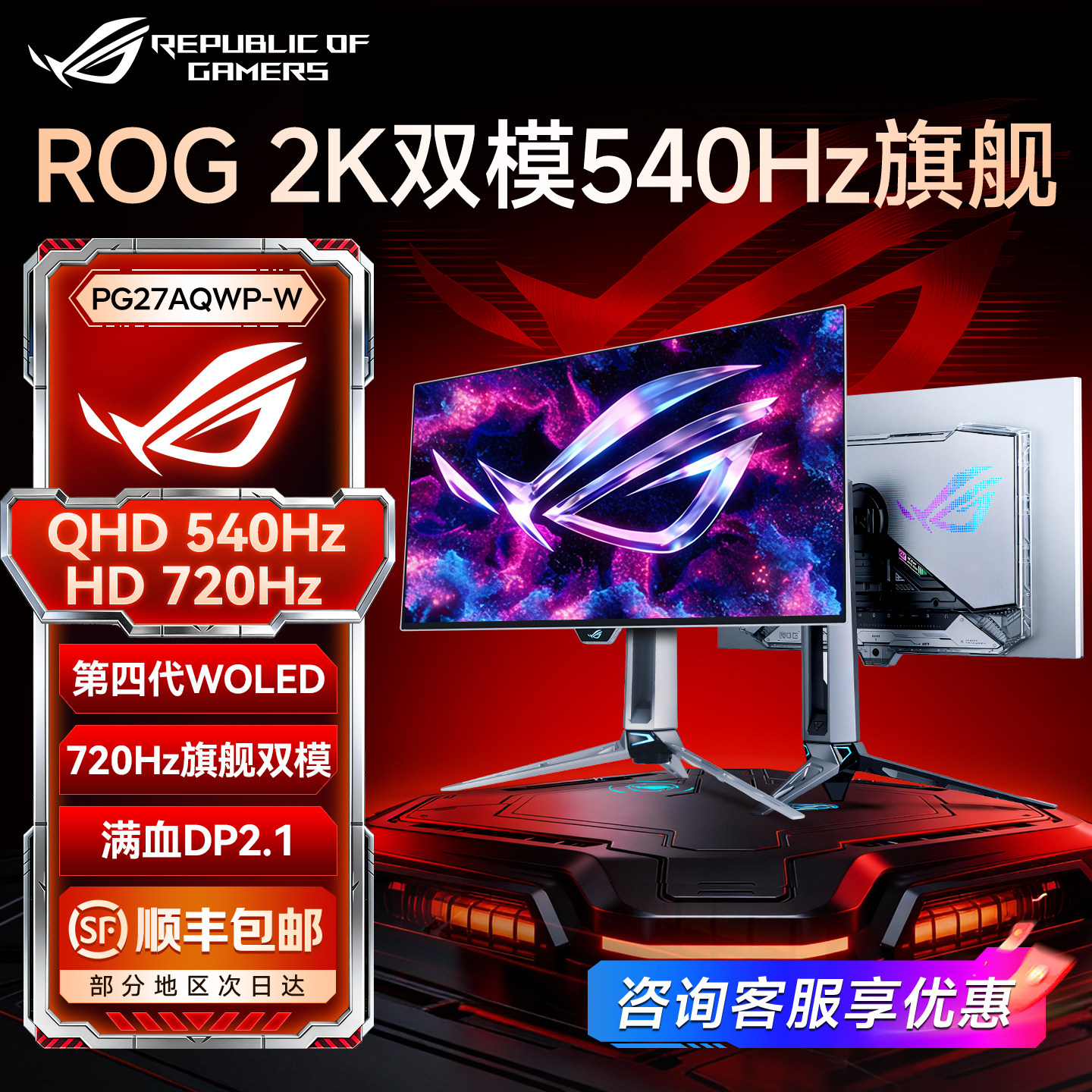 📚 华硕显示器ROG超杀27英寸PRO二代2K540Hz双模OLED屏幕PG27AQWP-W