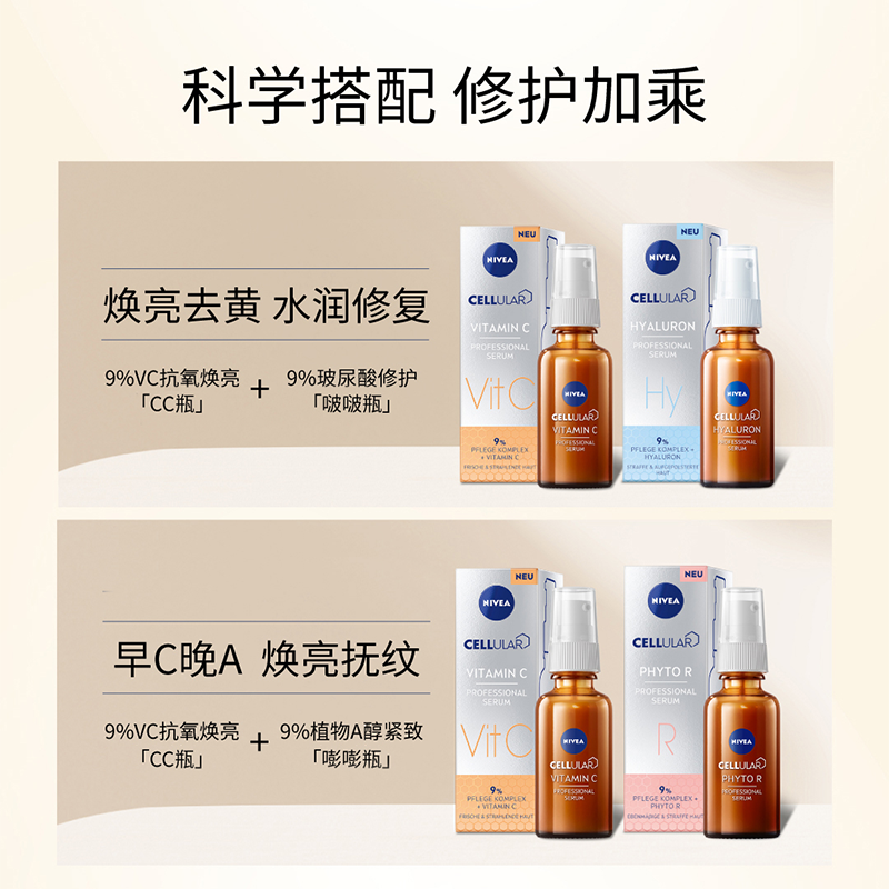 📚 妮维雅早C晚A VC精华液焕亮抗氧去黄敏感肌30ml